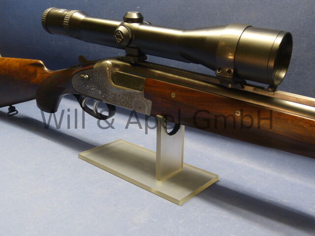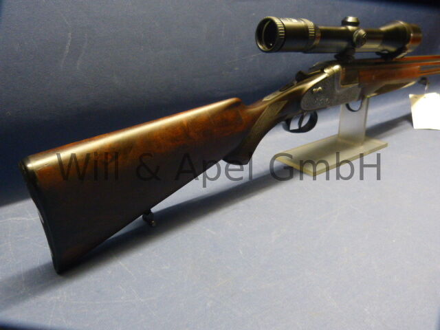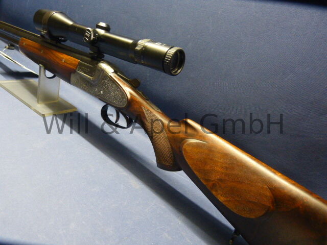MERKEL BOCKBÜCHSFLINTE Modell 213E SEITENSCHLOSS VERSION Kaliber 12/70 30-06SPRG Lauflänge 65cm Seitenschlosse nach H&H Art, herausnehmabr ARABESKEN GRAVUR Doppelabzug mit Rückst... ...weiterlesen