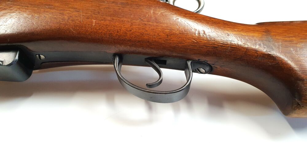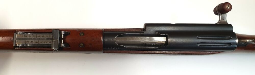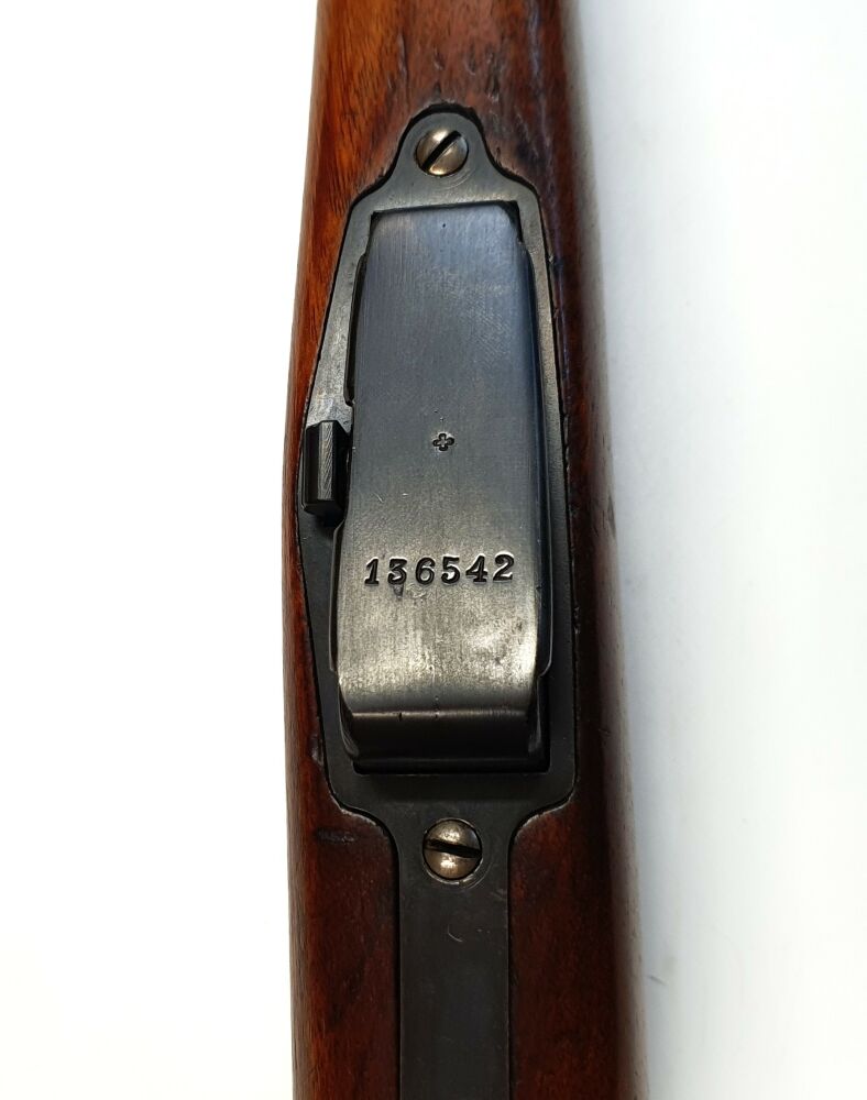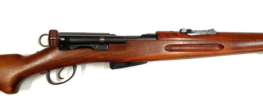 Repetierbüchse, Waffenfabrik Bern, Schweizer K11, Kaliber 7,5x55swiss, ausgesucht, komplett nummerngleich. Der Karabiner 11 wurde 1911 bei der Schweizer Armee als Standartbewaffnung eingeführt. Die schweizer Armee war die erste Armee, die standartmäßig Geradezug-Repetierer eingeführt hat. Mit der Entscheidung zu dieser Waffe, ist die Feststellung nicht zu umgehen, dass die Schweiz ihren Nachbarländern im Bereich der Militärrepetierer technisch um einige Jahrzehnte voraus war. Obwohl die Karabiner 11 nie in einem militärischen Konflikt eingetzt wurden, sind die Schweizer Gewehre und Karabiner bekannt für ihre sehr gute Präzision und Schussleistung.