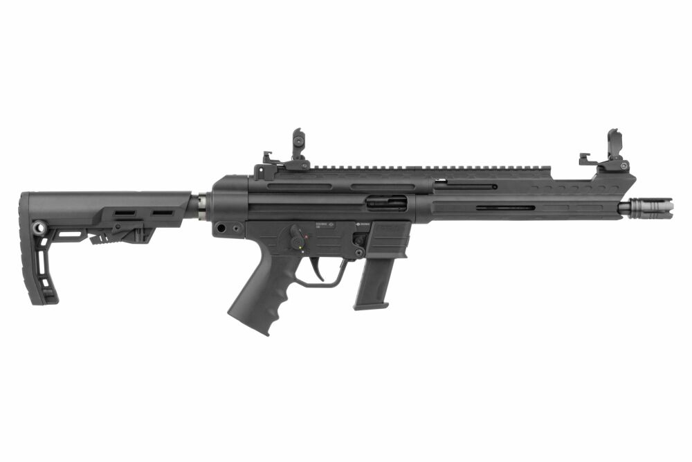 Ein zentrales Merkmal der GSG-9 Sport Compact ist der MIL-SPEC 5-Positionen-Schiebeschaft, der es ermöglicht, die Länge der Waffe schnell und einfach an die individuellen Bedürfnisse anzupassen – optimal auf jede Körpergröße und Schießhaltung.