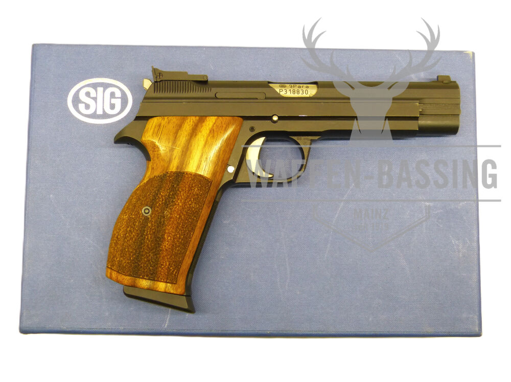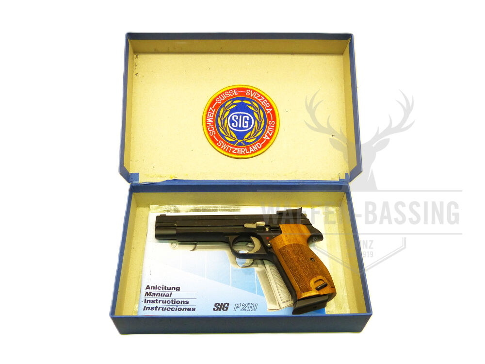 Die SIG Pistole P210-6 in einer Lauflänge von 5", entspricht 12,70cm, im Kal. 9 mm Luger, Gebrauchtwaffe, ist von der Schweizerischen Industrie Gesellschaft, kurz SIG genannt, hergestellt. Die Pistole ist ein Rückstoßlader mit Verriegelung im Browning System. Typisch ist die Herstellung aus Vollmetall. Dadurch wird eine hohe Fertigungspräzission erreicht. Die SIG Pistole ist zur Verwendung bei einigen Schießdisziplinen geeignet und besticht durch ihre technische Superlative. Die Kurzwaffenpistole Mod. 210-6 Kal. 9 mm Luger hat punsierte Holzgriffschalen, die für einen hervorragenden Halt sorgen. Die SIG Pistole hat einen seitlichen Sicherrungsriegel auf der linken Seite und wird geliefert mit Bedienungsanleitung im Original Papierkarton. Die Waffe wurde von uns Probe geschossen. Die SIG Pistole Mod. 210-5, Kal. 9mm Luger ist nicht nur für Sportschützen geeignet, sondern auch für Sammler interessant.