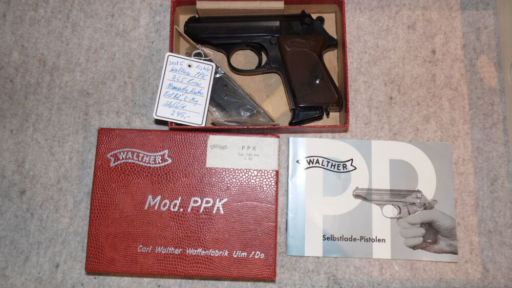 Walther PPK, Neuwertig, 7,65 Brow., Original Karton, E-Mag, Bedienungsanleitung + Schußbild. Sicherheitshinweis: Carl Walther GmbH UIm Im Lehrer Feld 1 89081 Ulm Tel: 0731 / 15 39 0 info@carl-walther.de www.carl-walther.de