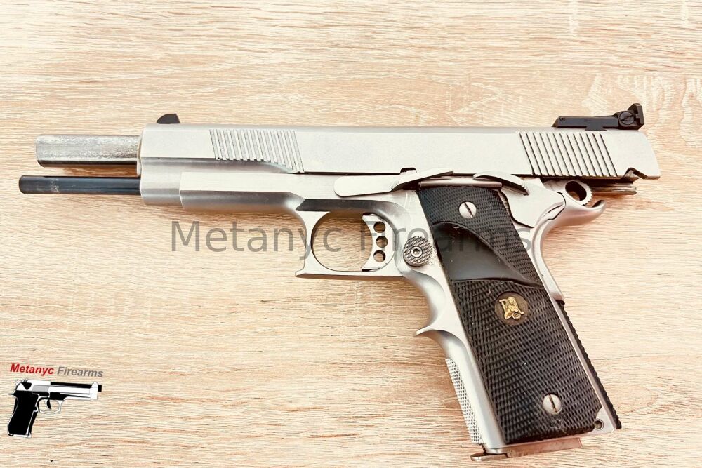 Angeboten wird eine halbautomatische Pistole Marke „Peters Stahl“ Modell „Omega Match“ in Kaliber .45Auto.