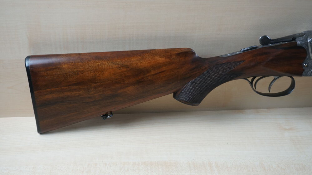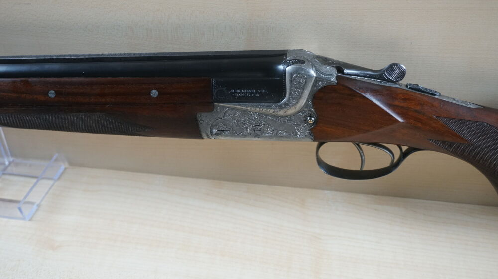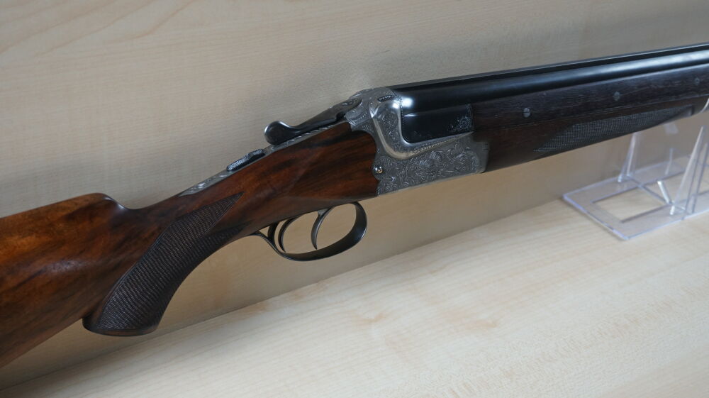 Bockdoppelflinte Merkel im Kaliber 12 / 70 mit Doppelabzug, Ejektoren, Lauflänge 71 cm, Schaftlänge 37 cm. ...weiterlesen
