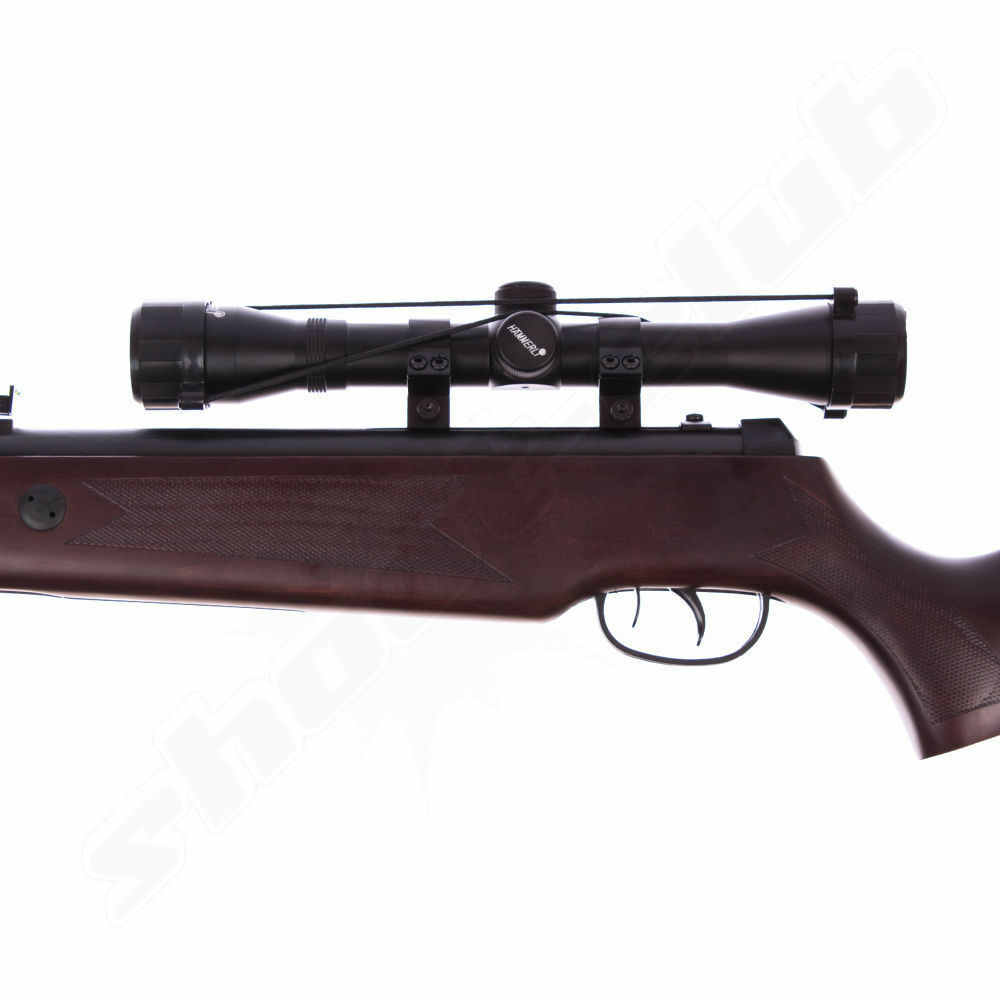 Die Firma Hämmerli bietet mit dem Hunter Force 750 ein kräftiges und gut verarbeitetes Mittelklasse-Luftdruckgewehr. Es ist für Einsteiger sowie fortgeschrittene uneingeschränkt zu empfehlen. Der Buchenholzschaft ist sehr gut verarbeitet und weist am Vorderschaft ein Fischhaut-Profil auf. Für einen guten Komfort wurde eine ventilierte Schaftkappe verbaut. Der Abzug besitzt einen einstellbaren Vorzug und bricht glasklar. Um Missgeschicken vorzubeugen, wurde eine automatische Sicherung verbaut. Als Zielhilfe bietet dieses Luftdruckgewehr sowohl ein hochwertiges offenes Fiber-Optik Visier als auch ein 4x32 Zielfernrohr.
