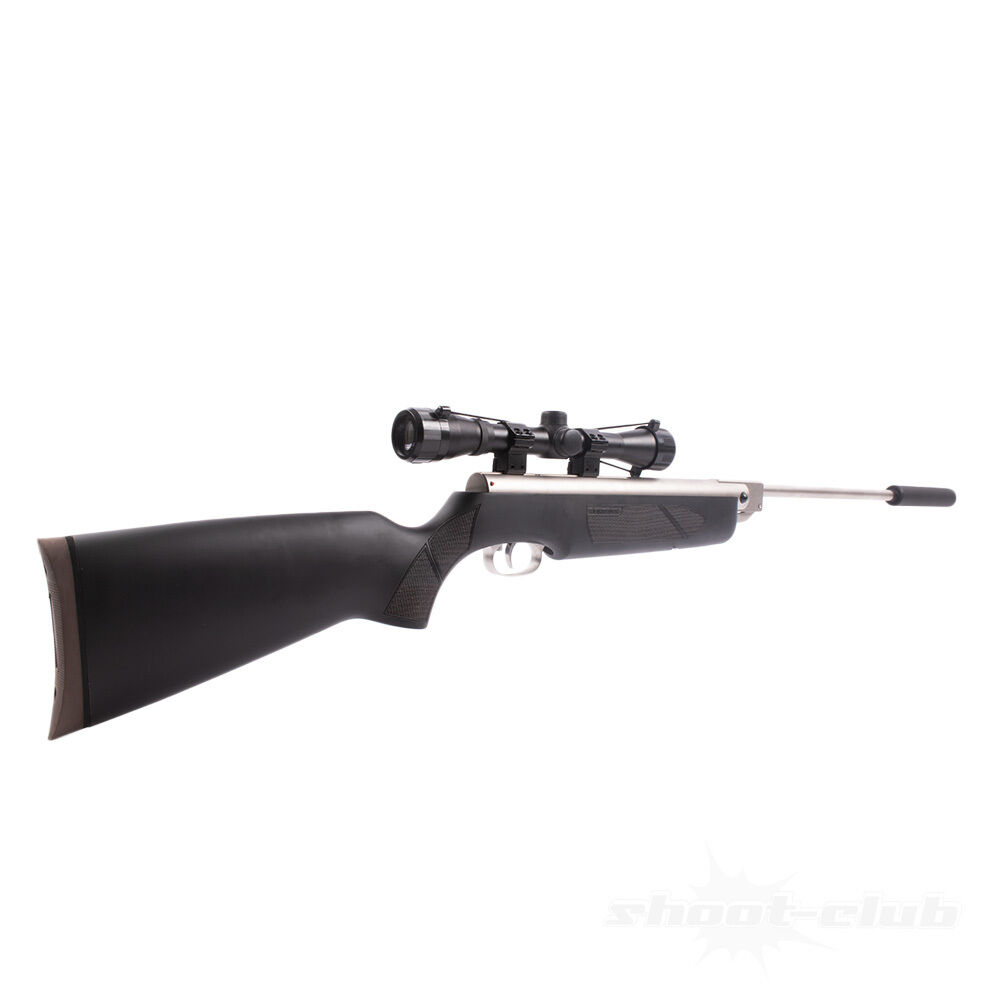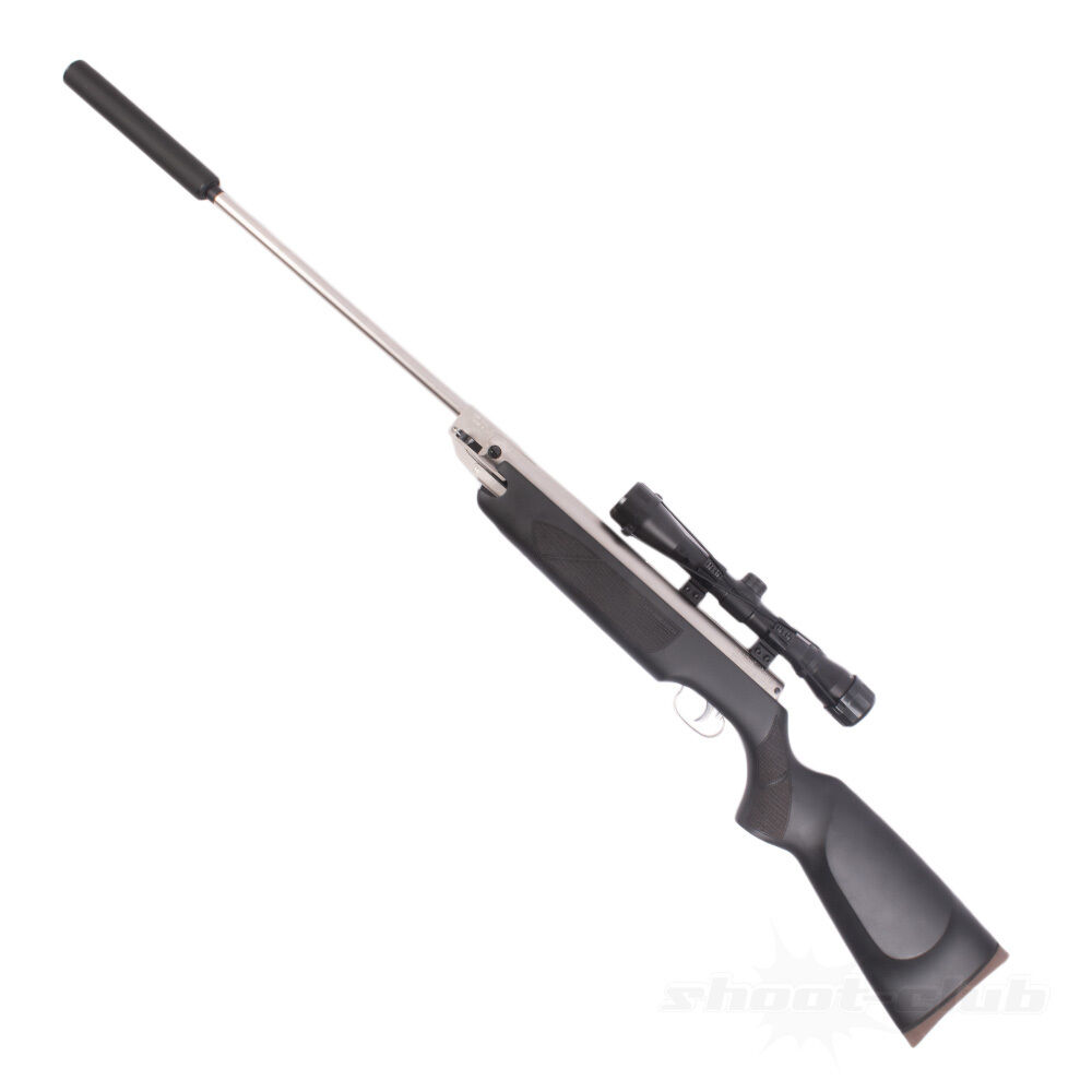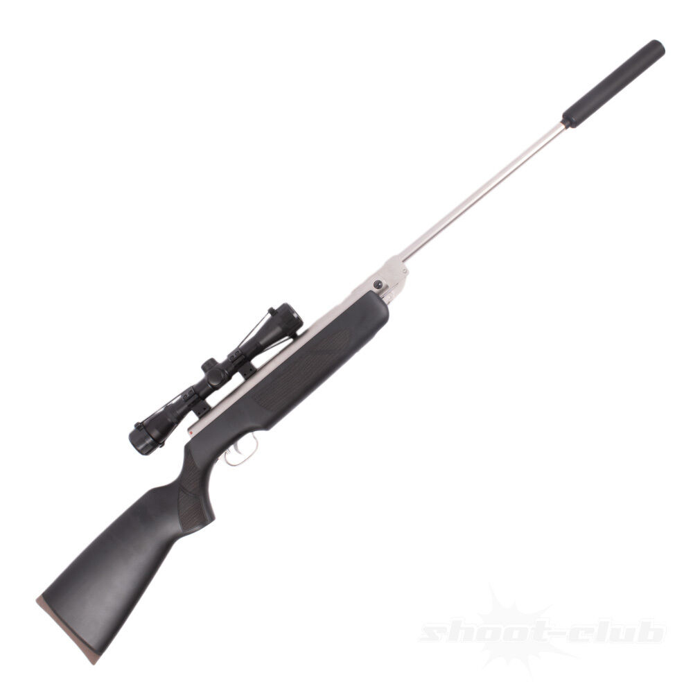 Luftgewehr Set inklusive Schalldämpfer, Zielfernrohr 4x32, Zielfernrohrmontage, Kugelfang und Zielscheiben