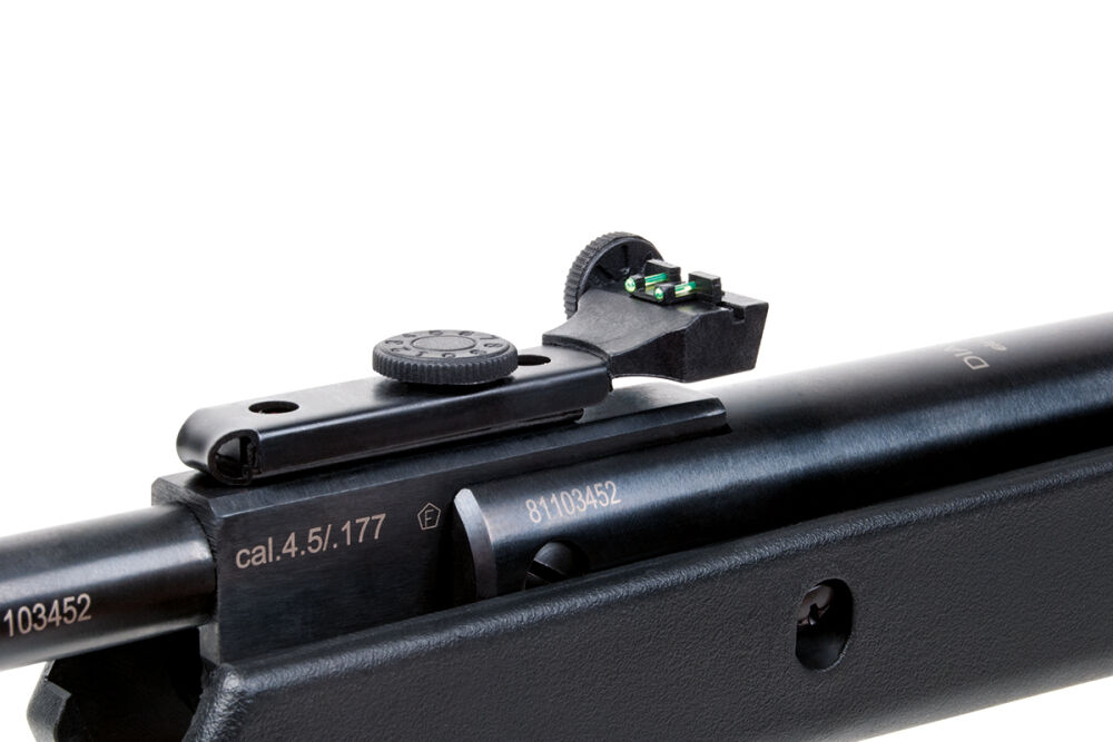 Zielgenauigkeit dank Fiberoptik-Visierung und PrismenschieneDie kontrastreiche Fiberoptik-Visierung ermöglicht eine schnelle und intuitive Zielerfassung. Für noch mehr Präzision steht Ihnen eine gefräste 11mm Prismenschiene zur Verfügung, auf der Sie problemlos ein Zielfernrohr montieren können. Der gezogene Lauf von 420mm garantiert dabei stets eine hohe Präzision der Diabolos.