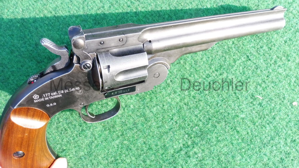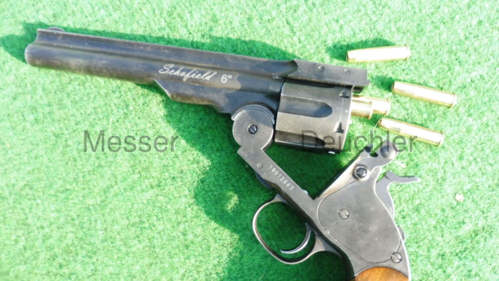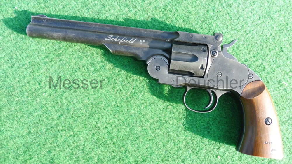 Der im Ursprung von Major Schofield der U.S.-Army konzipierte Revolver verschießt sowohl Diabolos als auch BB's, je nach eingesetzer Hülse. Die Hülsen für Rundkugeln sind optional erhältlich. Die Trommel und der Lauf lassen sich mit einer Handbewegung abknicken. Das System drückt die Hülsen aus der Trommel und ermöglich so einen schnellen Ladevorgang. Das hohe Gewicht des Vollmetall-Modells und die gute Verarbeitung lassen nicht nur Sammlerherzen höher schlagen.