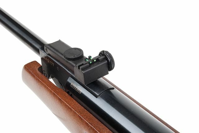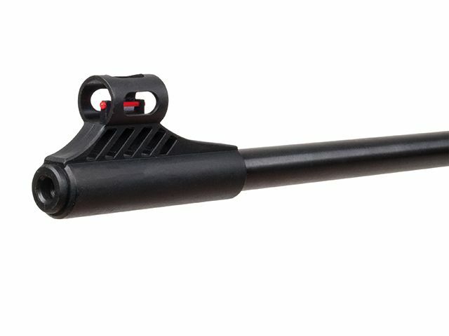 Das Diana-Luftgewehr in modernem Design mit ergonomischen Lochschaft verfügt über eine gummierte Schaftkappe und eine gefräste Prismenschiene.