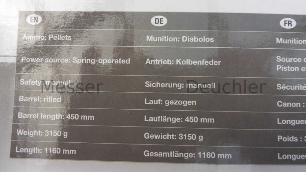 Die überlegene Präzision ergibt sich aus der Unterhebel-Bauweise: Während die Feder per Muskelkraft über einen Stahlhebel unter dem Lauf gespannt wird, bleibt der Lauf starr vor dem Trommelmagazin stehen. Im Kaliber 4,5 mm (.177) werden 10 Diabolos in das Magazin geladen und einzeln mit < 7,5 Joule durch den gezogenen Lauf getrieben. Dadurch entfällt das sonst typische Einsetzen jedes einzelnen Diabolos. Bis zu 20 Treffer in schneller Schussfolge sind dank eines zweiten, mitgelieferten Magazins einfach möglich.