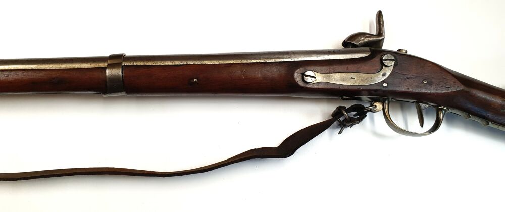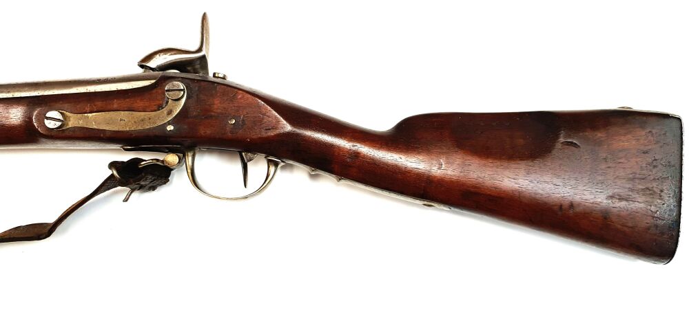 Französische Muskete des Empire français. Die originale Charleville-Muskete Modell 1777 war eine Steinschlosswaffe. Sie wurde ursprünglich nicht als Perkussionsgewehr hergestellt. Allerdings wur... ...weiterlesen