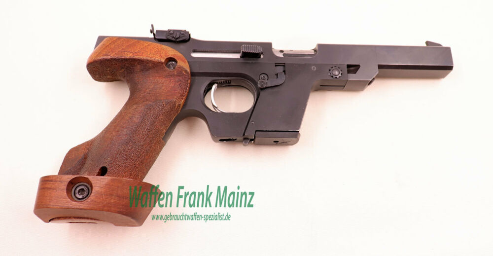 Exportausführung, bereits mit Kammerfang, und neuem, mehrfach verstellbarem, breitem Matchabzug, Magazinschacht bereits für Wechselsysteme in Kal. .32S&W long WC ausgebaut, (passendes Wechselsystem siehe Art. 212025) verstellbarer Holzgriff rechts, Gr. S-L, auf die Hand des Vorbesitzers fachlich angepasst...mit diesem Modell wurden Weltrekorde und zahlreiche, internationale MEdaillen und Titel gewonnen....