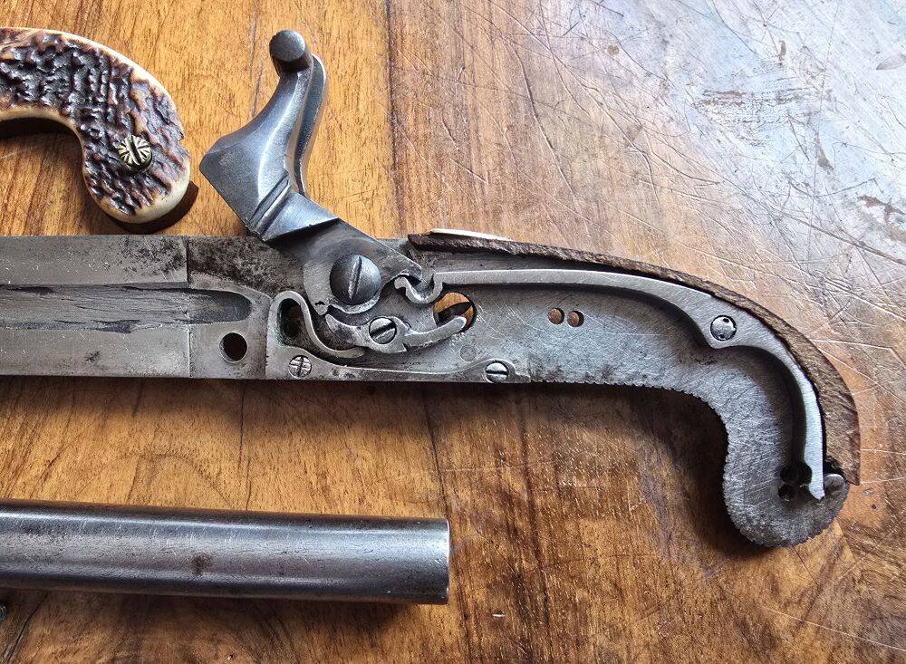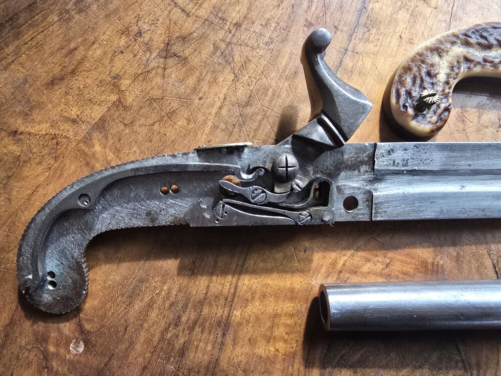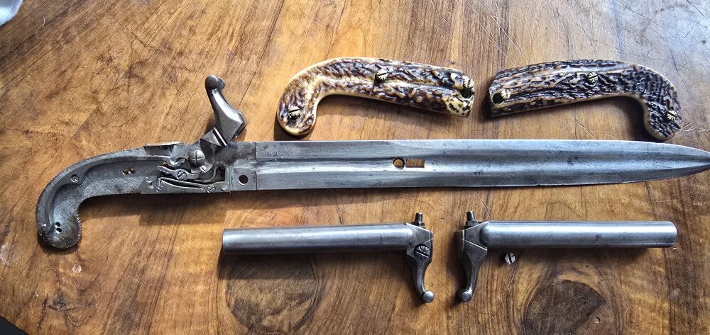 beide Hähne.Hirschhorngriffschalen. Super seltenes und ungewöhnliches Sammlerstück. Hochinteressantes System.