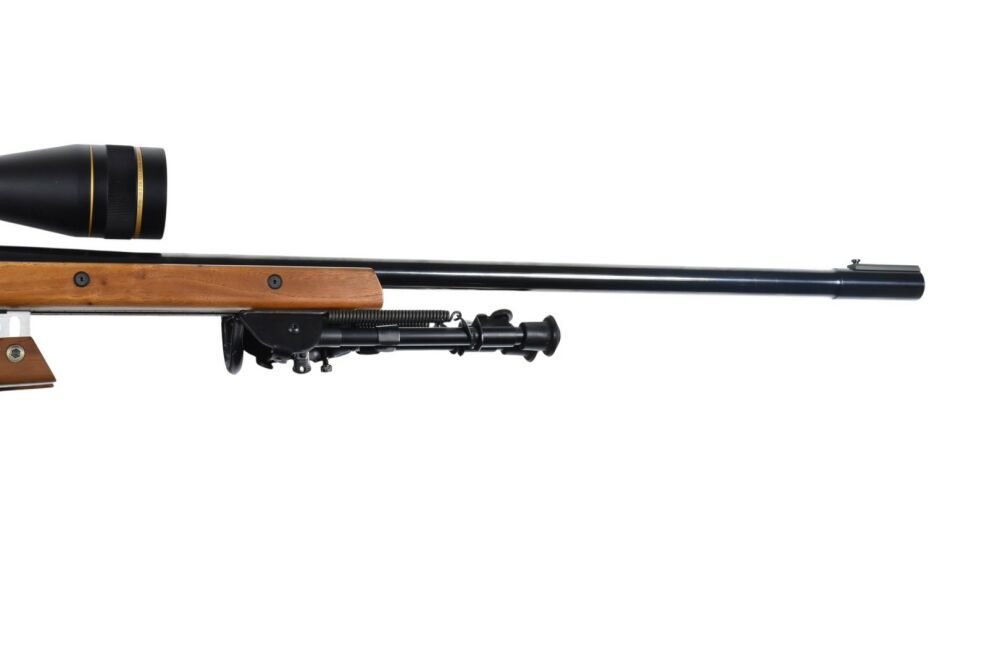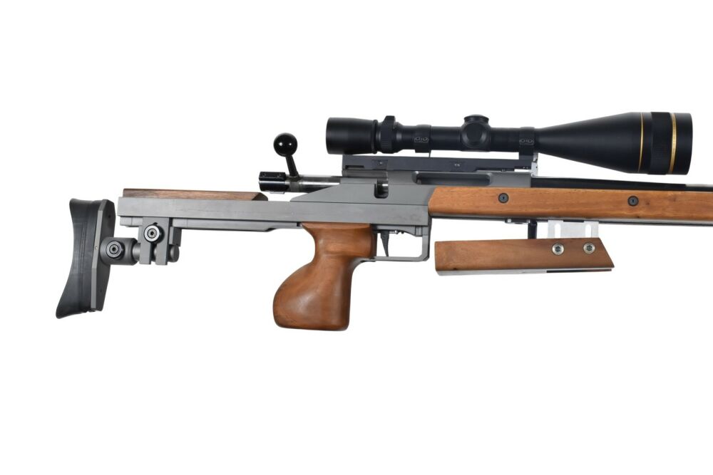 Diese Keppeler KFP2 Long Range Einzelladerbüchse im Kaliber .308 Win hat eine Gesamtlänge von 125 cm, eine Lauflänge von 78 cm und eine Schaftlänge von 36 cm. Montiert ist ein Leupold Vari-X III 6,5-20x50 Zielfernrohr. Die Büchse verfügt über ein Zweibein sowie einen einstellbaren Vorder- und Hinterschaft. Ausgestattet ist das Modell zudem mit einem Druckpunktabzug. Der Beschuss stammt aus dem Jahr 2003.
