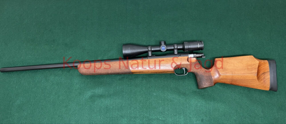 Einzellader der Fa. Walther Model KJS Kaliber 22 Hornet Matchabzug Lauflänge 62 cm Laufdruchmesser 19 mm Schaftlänge 36,5 cm System und Lauf Mat-brüniert Optik Zeiss Terra 4-12x50 Abs... ...weiterlesen