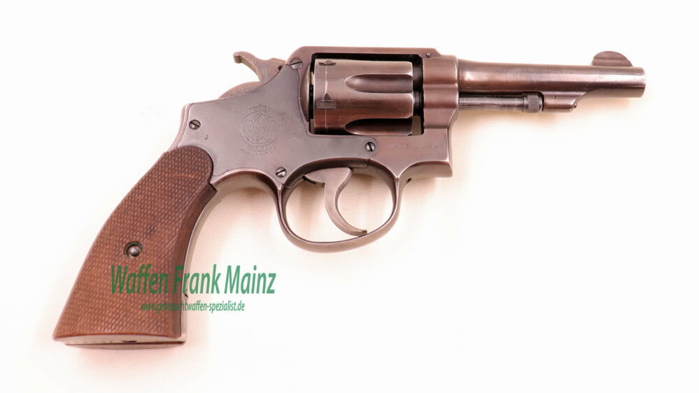 stammt aus Sammlungsauflösung, diese Victory Grundmodelle wurden von der USA an England als Kriegshilfe gefertigt und 1965 mit einem Lauf und Trommel in Kal. .38special versehen und neu beschossen, sowie neue Griffschalen mit Fischhaut versehen, und danach an verschiedene Polizeidienststellen der BRD als Grundbewaffnung weitergegeben (zusätzliche Stempelung auf dem Griffrücken "sk.fürth.mun")...ein Stück zum Sammeln und Schießen....