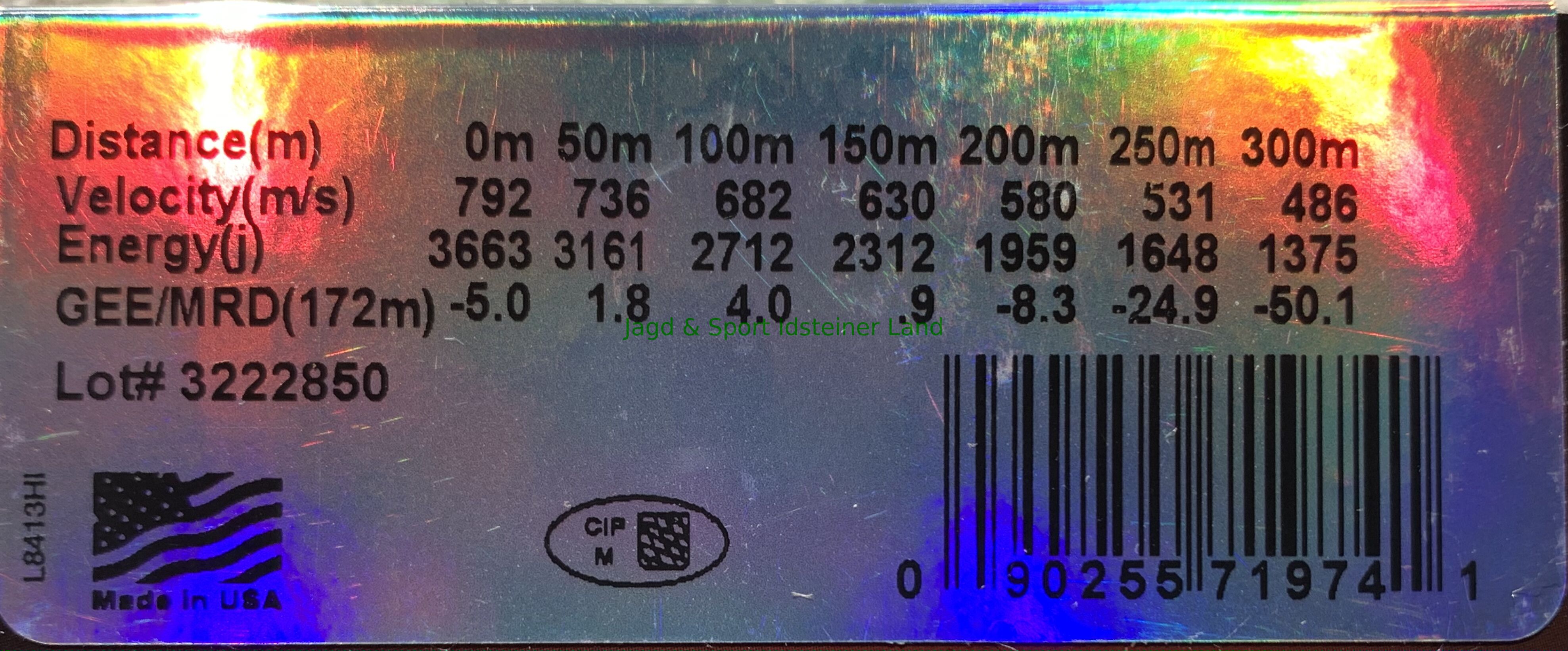 | Geschossenergie E0 (Joule) | 3663,0 |