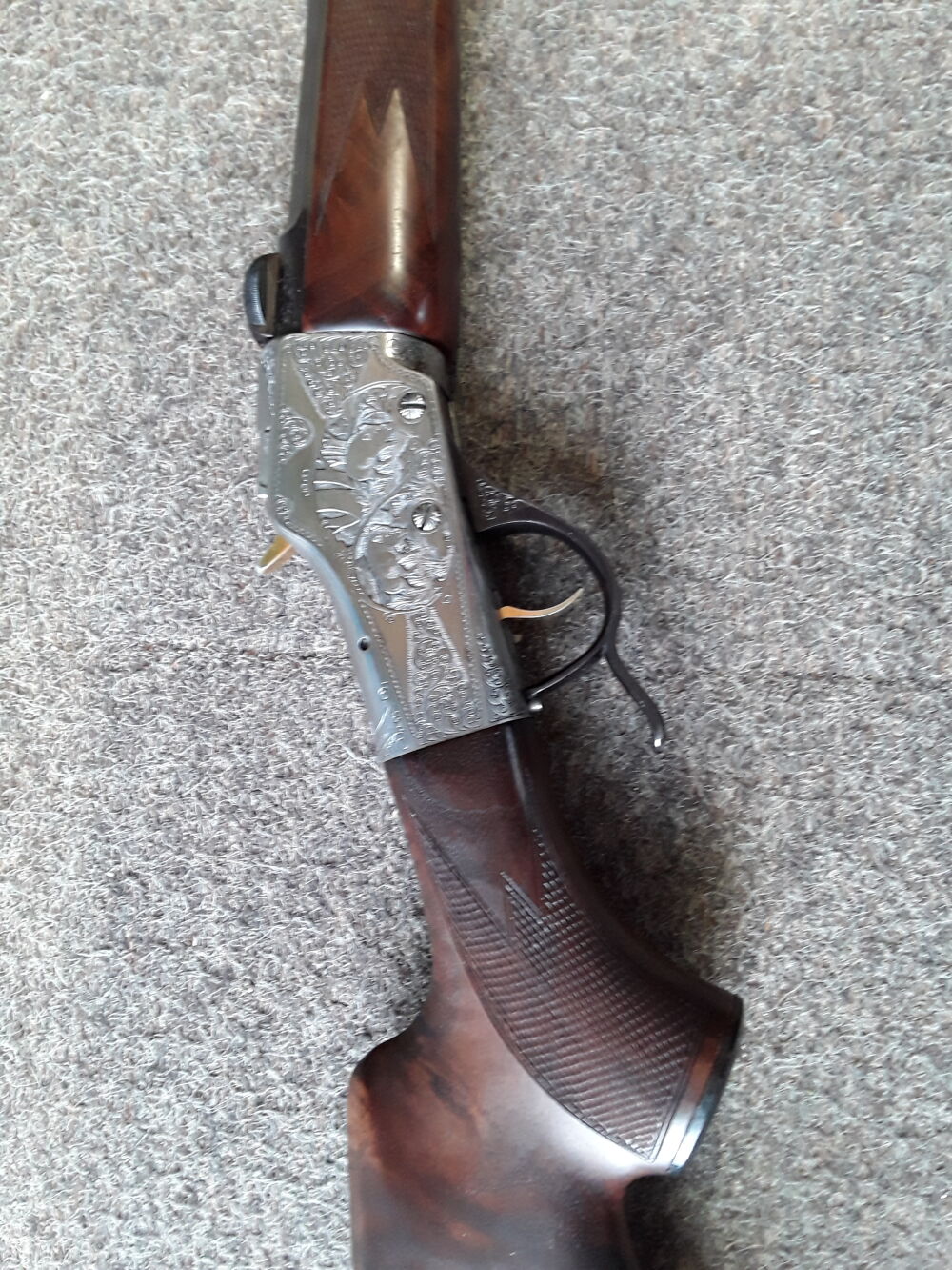 Neuwertige Fallblockbüchse mit Hahn.Achtkantlauf durchgehnd,aufwändige Gravuren,sehr gutes Nussbaumschaftholz.SEM Zeiss 6x42 neuwertig. ...weiterlesen