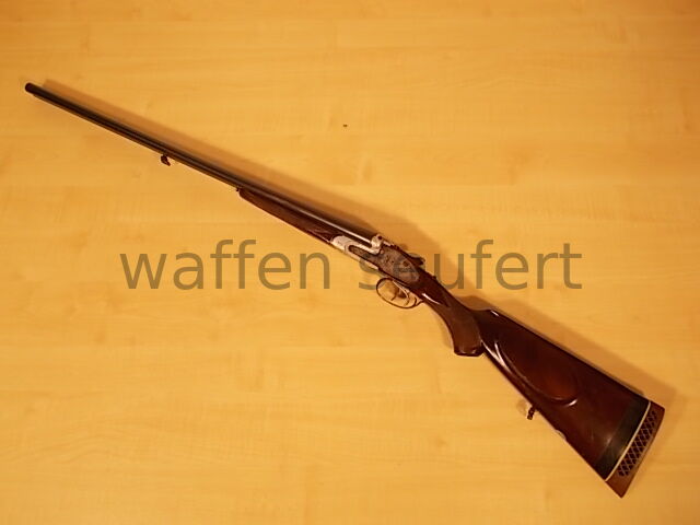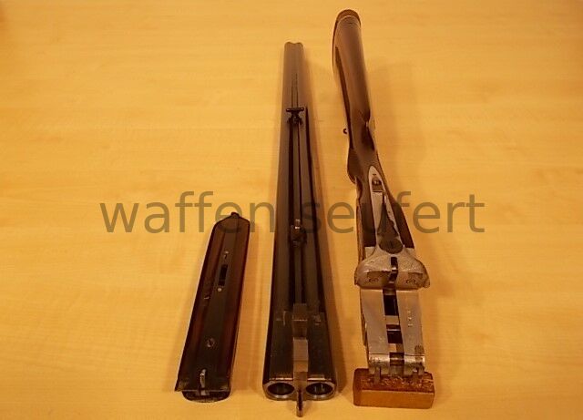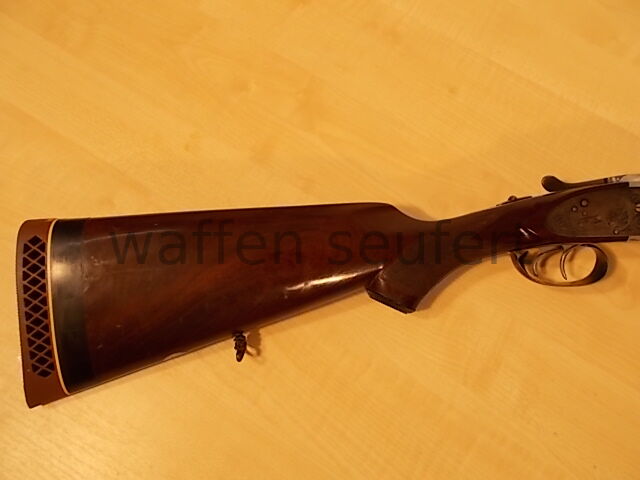 Forest Seitenschloss-Doppelflinte. Klassiker aus der Zeit der großen Niederwildjagden. Elegante schlanke Flinte unter dem Namen Forest für Frankonia in Spanien gefertigt. Frühe Ausführung aus den 1970... ...weiterlesen