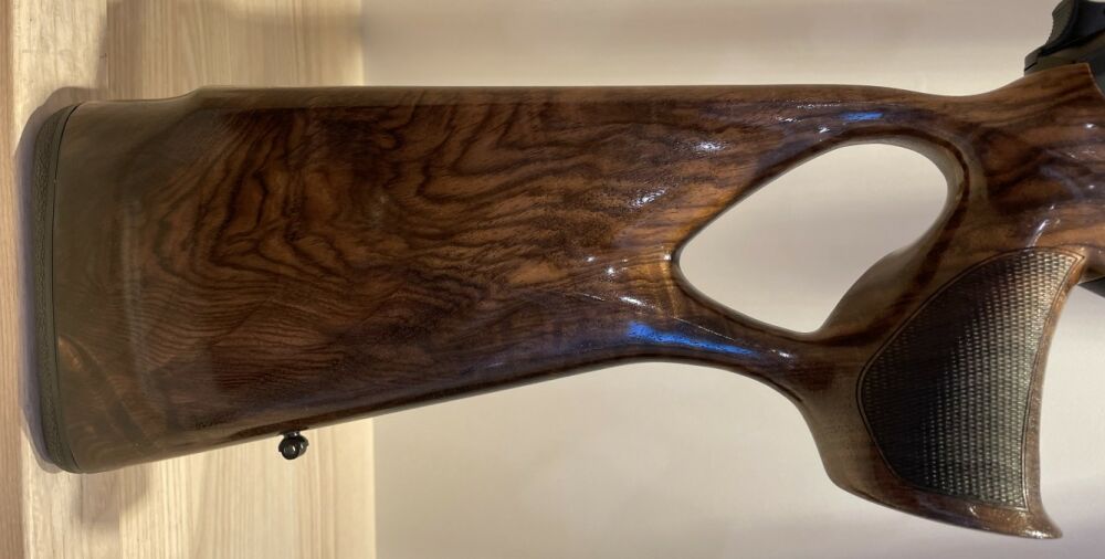 • 2-teiliger, ergonomisch perfekter Nussbaumholz-Lochschaft - HK 4+! • Ebenholz-Vorderschaftabschluss • Systemkasten in mattschwarzem Finish mit goldfarbenem R8-Schriftzug • Titannitrierter Abzug (... ...weiterlesen