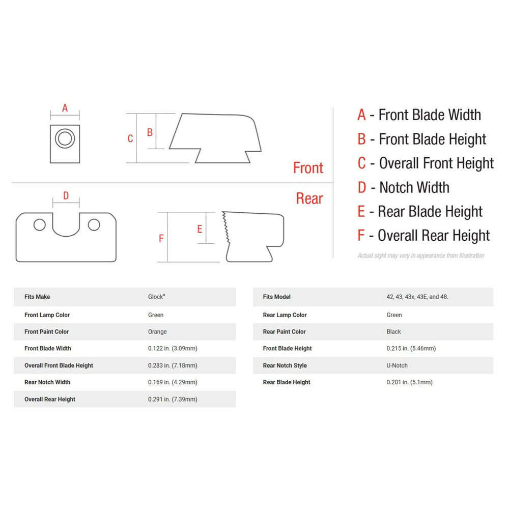 Pistole Glock Small Frame/Griffstück Modell 42, 43, 43x, 43E und/oder 48 nicht für Modell MOS geeignet, HD XR Hard Duty Nacht Visierset grün mit Visierkorn grün selbstleuchtend, Visierkorn ist schmäller und mit Dot orange umrandet Daylight, Visierblatt geriffelt mit breitem U-Shaped Notch schwarz, Code GL613-C-600846 Trijicon USA. Nacharbeiten sind eventuell erforderlich - eine fachgerechte Montage wird empfohlen!