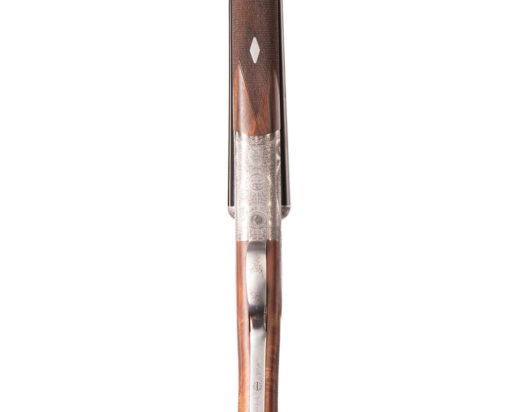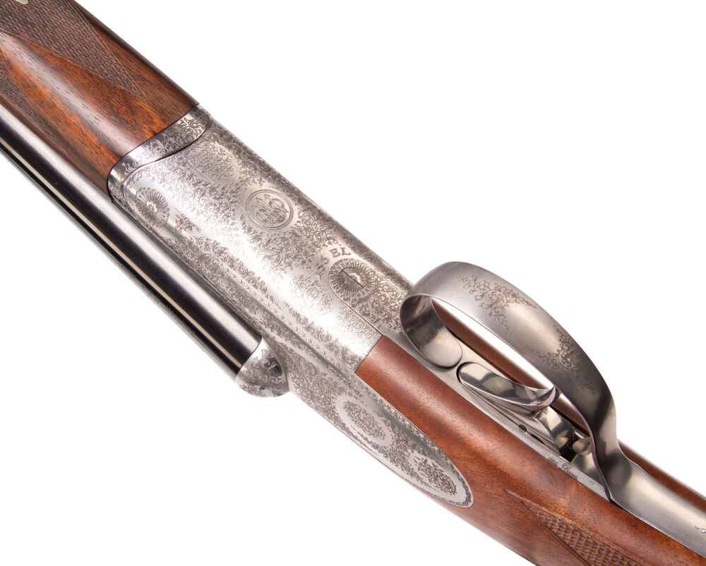 > Ausführung mit langen Seitenplatten> roundbody> Gravur "scroll" (feine Arabesken)> selektiver Einabzug> Ejektoren> Multichokes (OcHP)> Lauflänge 71cm> Schaftlänge 3... ...weiterlesen