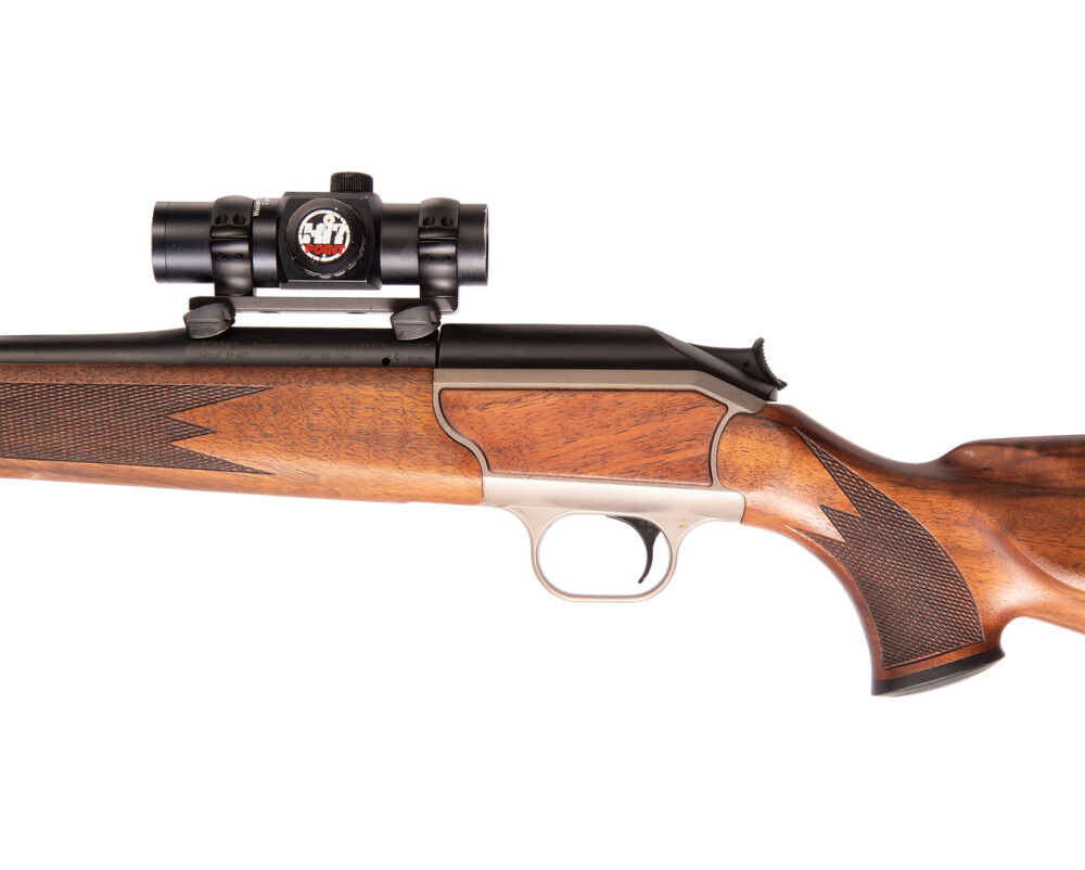Zustandsbeschreibung: gebraucht> Zielfernohr HitPoint (Rotpunktvisier)> Blaser Sattelmontage> Ausführung „Standard“> Holzschaft mit Bayrischer Backe> Riemenbügelaufnahme> offene Visi... ...weiterlesen