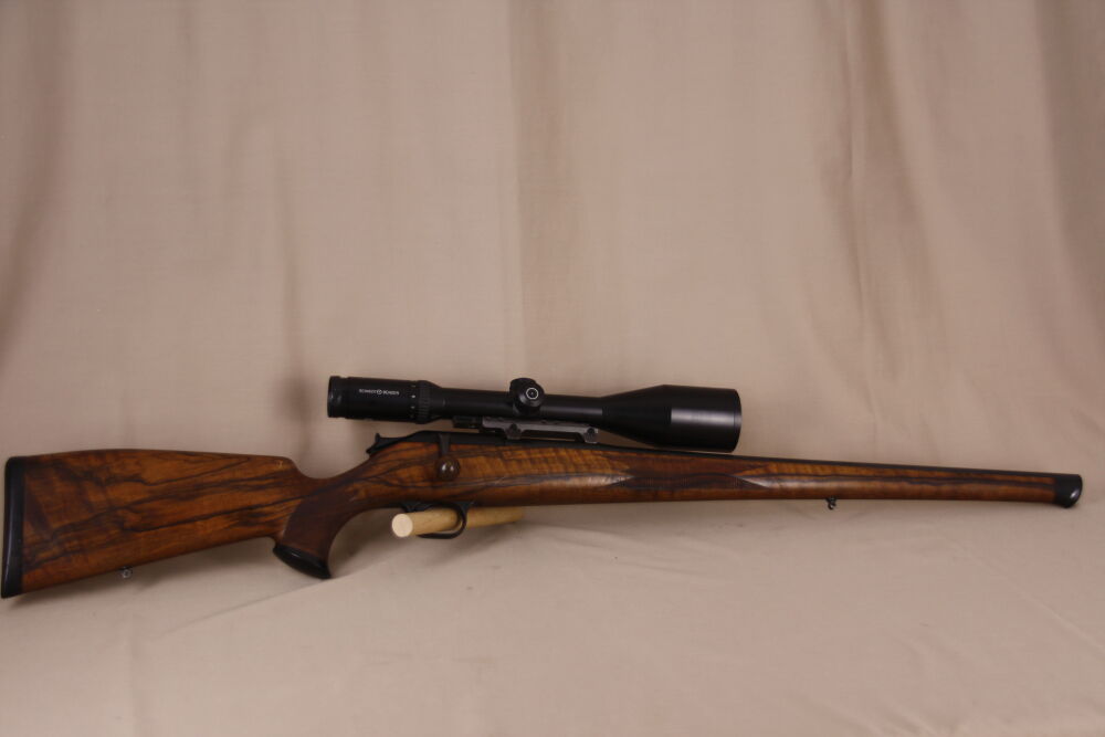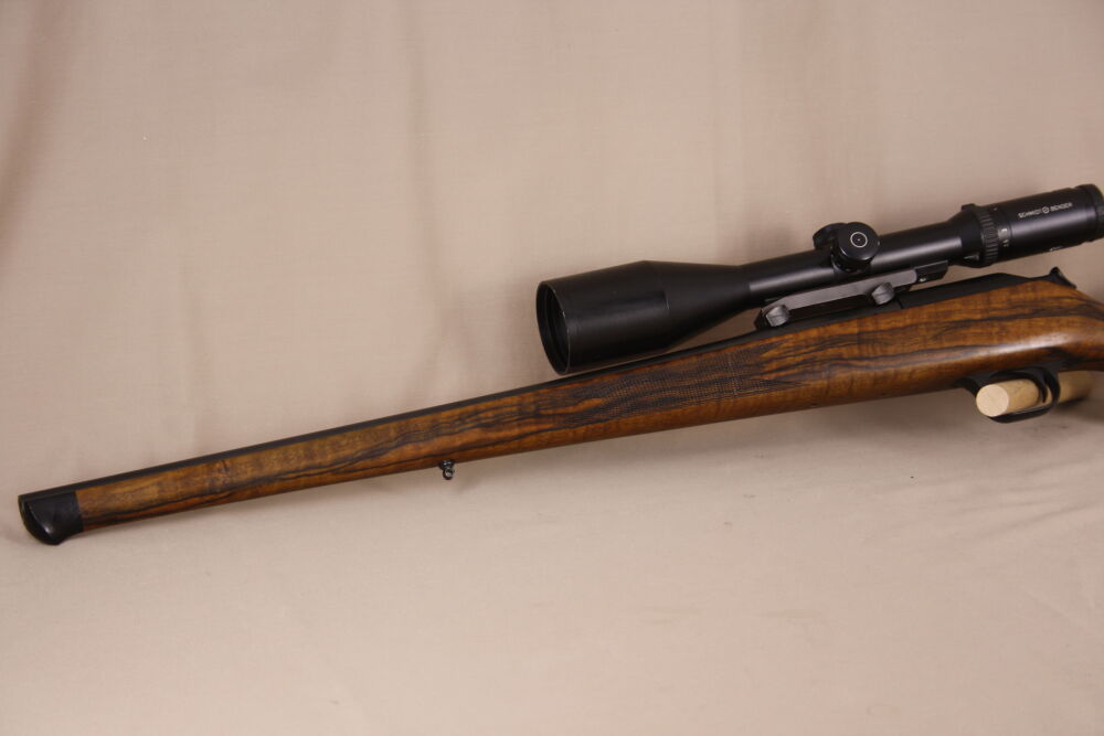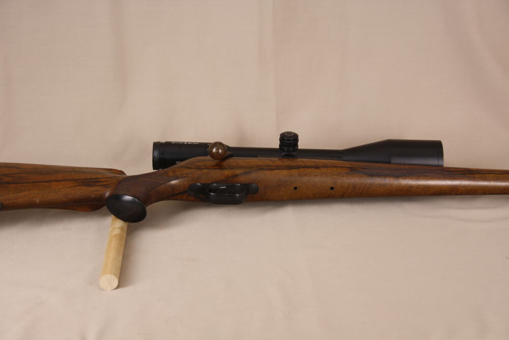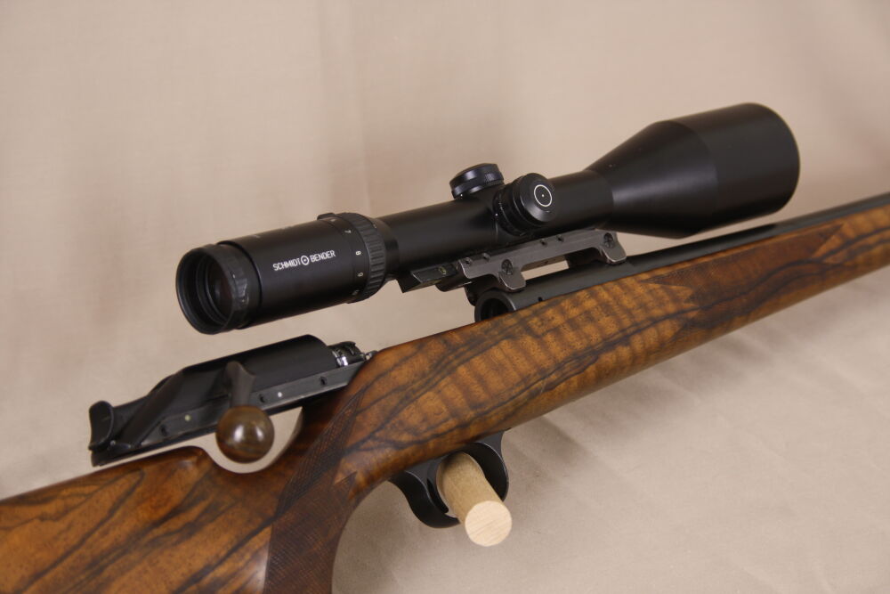 Mit zu der Büchse gehört das abgebildete, lichtstarke "Schmidt und Bender" 2,-5-10x56 Klassik Zielfernohr, Abs. L3 mit Leuchtpunkt!