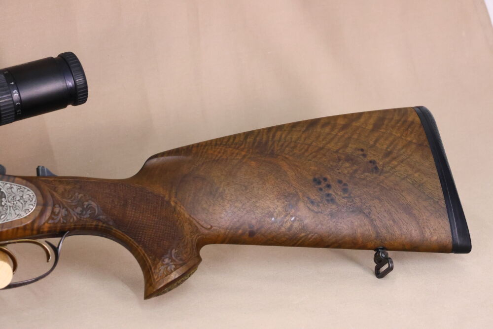Machen Sie diese Büchse zu Ihrem täglichen Begleiter im Revier - hiermit kann Ihnen sprichwörtlich "von Fuchs bis Hirsch" alles kommen und auch ohne Anblick können Sie sich an den exklusiven Gravuren o. der hochwertigen Bauweise erfreuen!