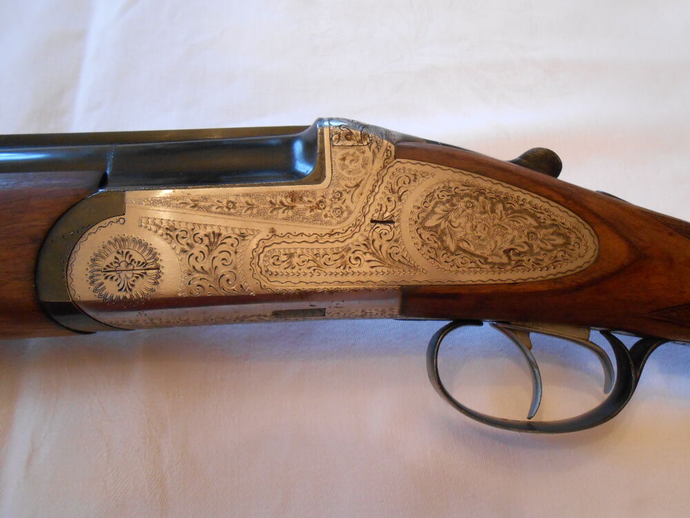 Bockflnte Armitalia; Kal. 12/70 mit langen gravierten Seitenplatten in sehr gutem Zustand mit einwandfreiem gut gemasertem Schaft. ...weiterlesen