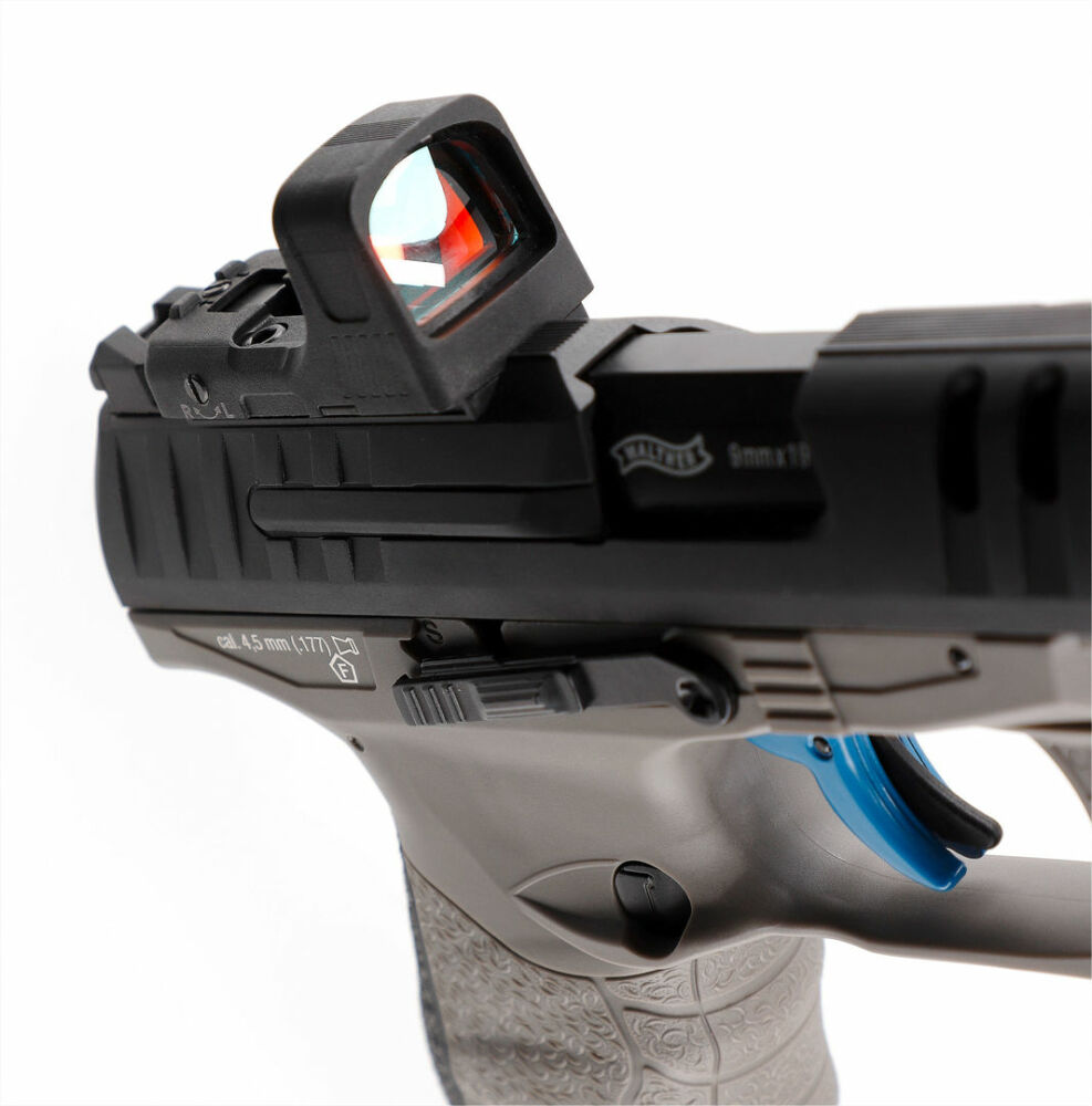 Inkl. Leuchtpunktvisier Umarex RDS 8, Montagewerkzeug und Cover-Plate. Holsternutzung aus dem Umarex-Zubehör nur bei Verwendung von Kimme und Korn möglich.