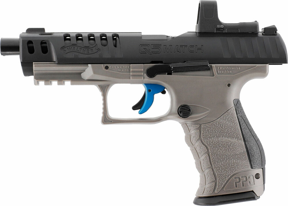 Die Walther Q5 Match ist eine exzellente Wettkampfpistole mit sportlichen Ambitionen. Aufgrund der Lauflänge, langen Visierlinie, Leuchtpunktvisier-Aufnahme und der optimalen Abzugscharakteristik eignet sie sich für dynamische Disziplinen ebenso wie als Verteidigungswaffe.