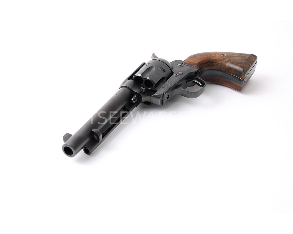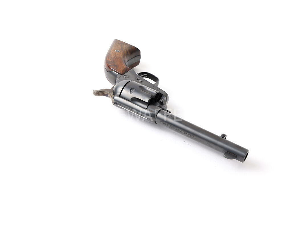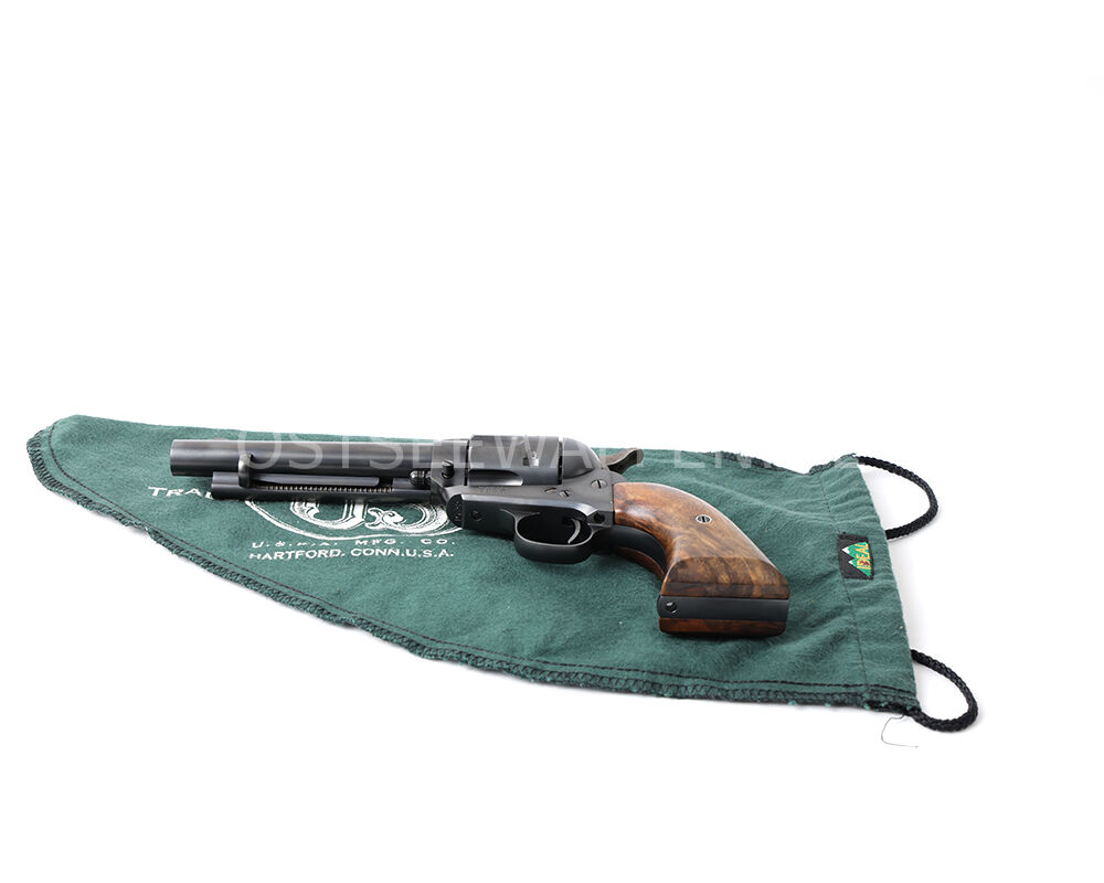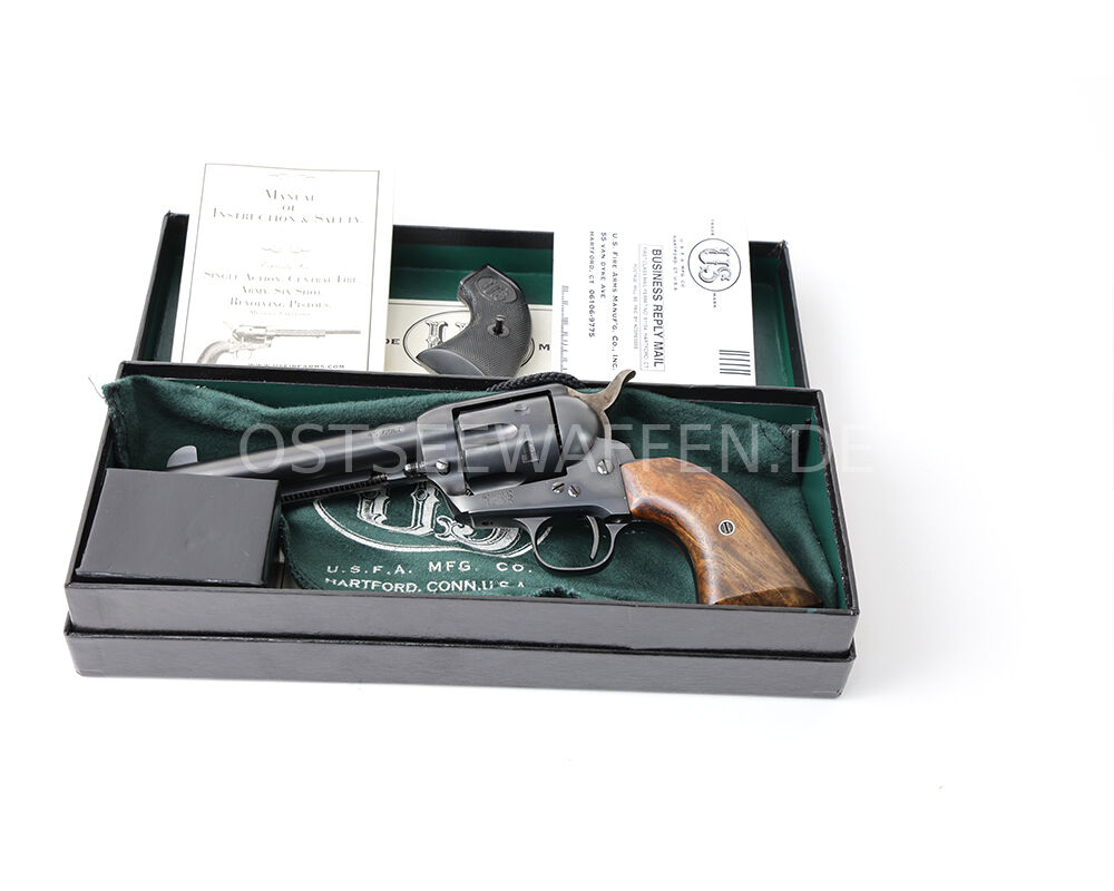 Angeboten wird ein seltener USFA Single Action Army Revolver im klassischen Kaliber .45 Colt aus der begehrten frühen Produktionszeit um 2001/2002. Mit der Seriennummer D735 gehört dieses Stück zu den frühen Hartford-Fertigungen – ein Zeitraum, in dem USFA Waffen herstellte, die heute in Sammlerkreisen als die hochwertigsten SAA-Repliken überhaupt gelten. Die Beschusszeichen ist dezent verdeckt gesetzt und bewahrt die sammelwürdige Optik des Revolvers.
