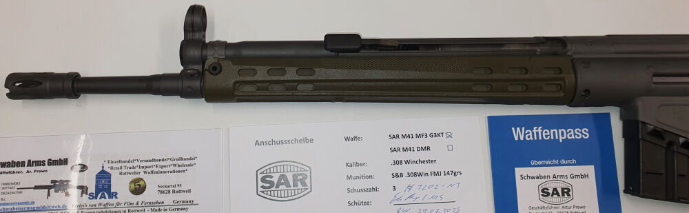 Neuwaffe Selbstladebüchse SAR M41 SPORTMATCH MF3 G3KT von der Firma Schwaben Arms GmbH Neckartal.95 in Rottweil, neu hergestellten M41 Gewehre MADE IN GERMANY. Gehäuse und Griffstück Manganphosp... ...weiterlesen