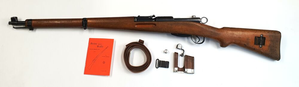 Die Waffe ist nicht überarbeitet und dem entsprechend ist der Zustand der Waffe sehr gut. Beiliegend erhalten Sie einen Laderahmen, einen Mündungsschoner, eine Anleitung und einen Riemen.