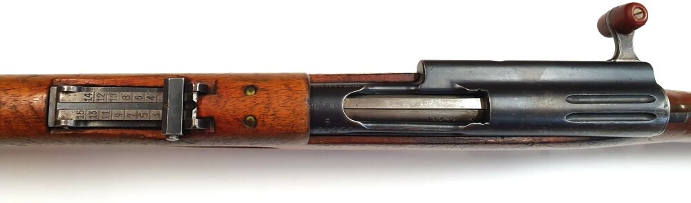Das vorliegende Gewehr stammt aus Depobeständen der schweizer Armee und wurde vor Ort ausgesucht. Das Gewehr verfügt über einen gültigen Beschuss und ist komplett nummerngleich, auch Bajonett. Die Waffe ist nicht überarbeitet und dem entsprechend ist der Zustand der Waffe sehr gut.