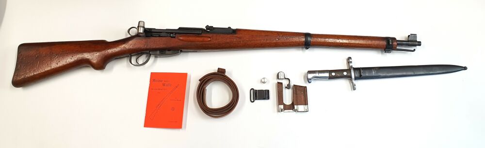 Die Waffe ist nicht überarbeitet und dem entsprechend ist der Zustand der Waffe sehr gut. Beiliegend erhalten Sie einen Laderahmen, einen Mündungsschoner, eine Anleitung und einen Riemen.