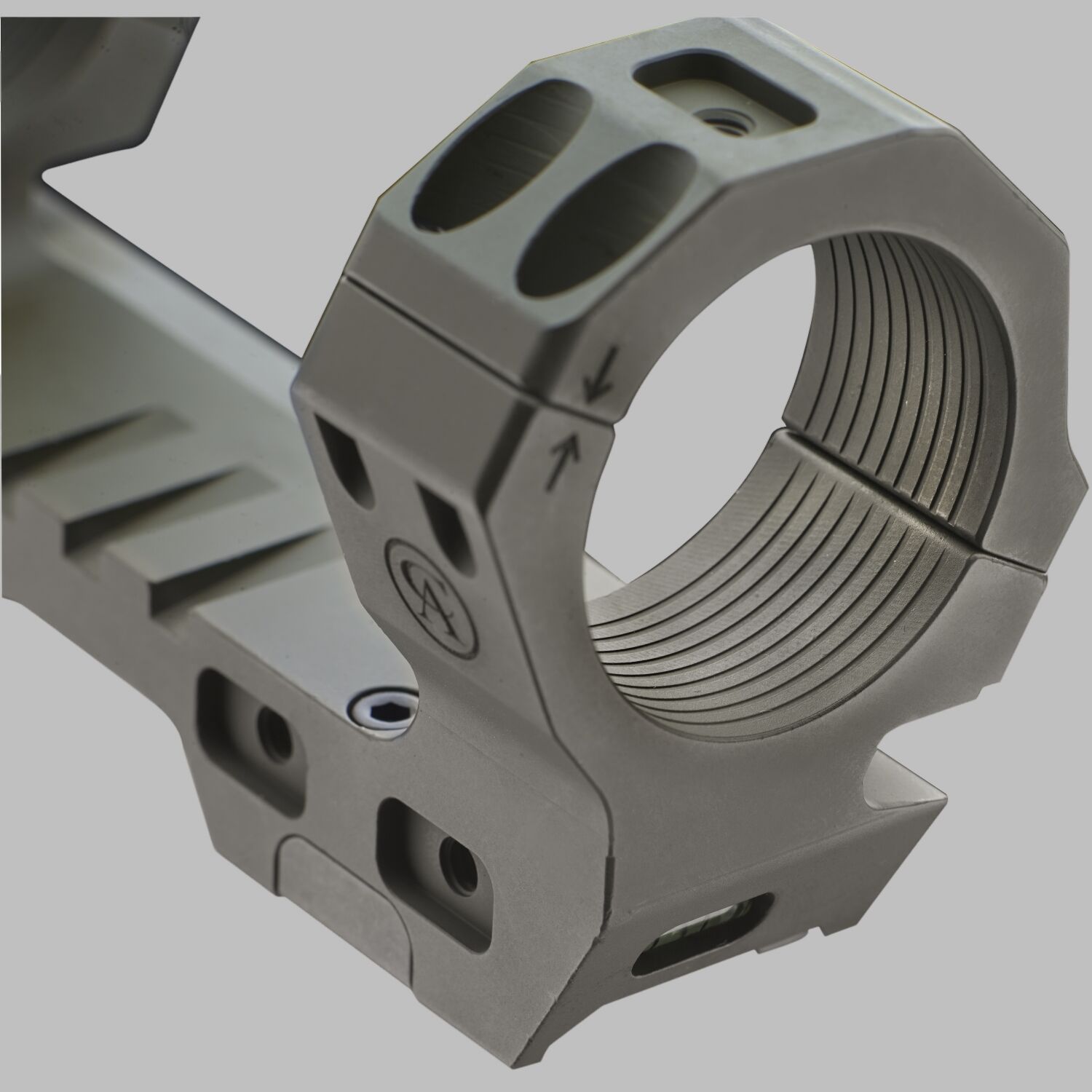 Die schräge 45° Grad Einteilung der Ringe sorgt für ein schlankeres Design und verbessert den Zugriff sowie die Sichtkontrolle der Leuchtabsehen-, Parallaxe- und Verstelltürme, sowohl im Sitzend- als auch Liegendanschlag. Die Ringe verfügen zudem über Einfräsungen/Rillen auf der Innenseite, die den Halt des Zielfernrohrs verbessern.