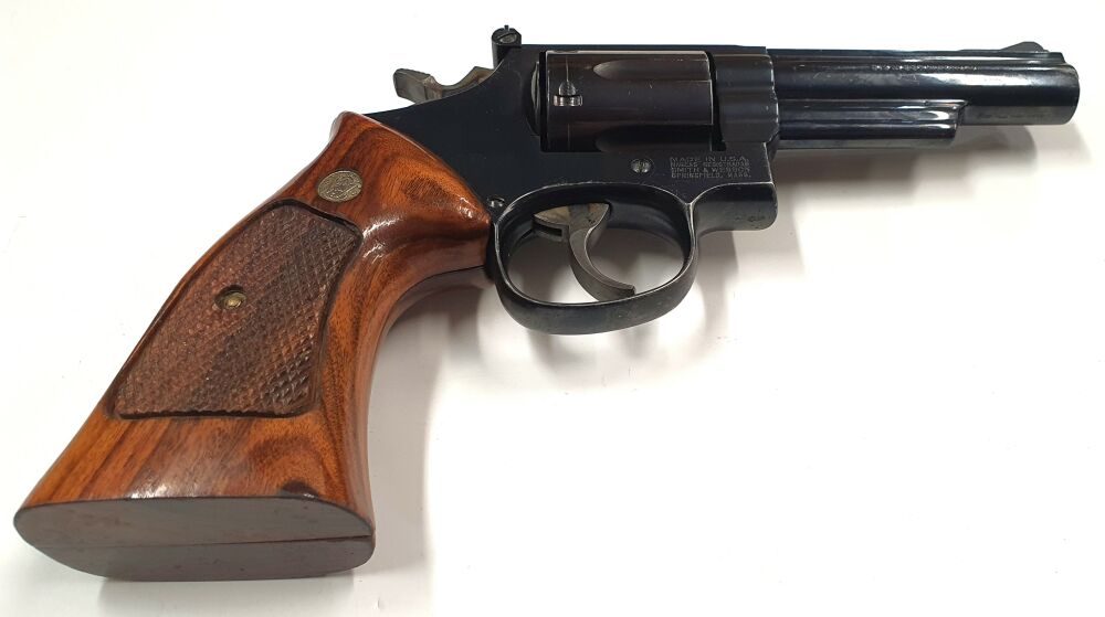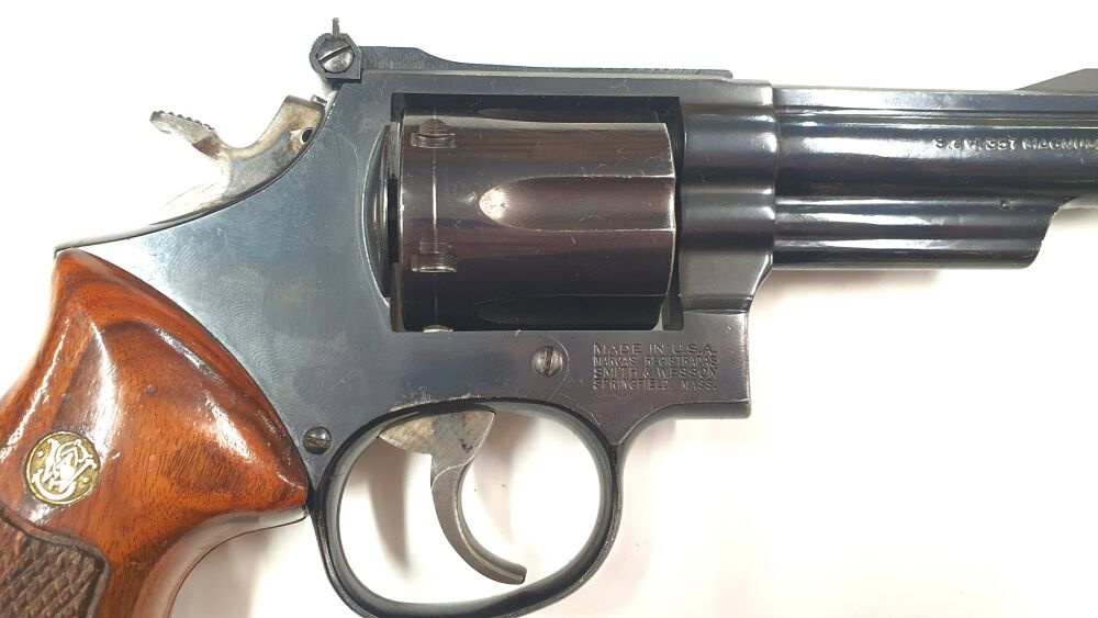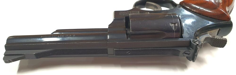 Der Smith & Wesson Mod. 19 ist ein Revolver im klassischen S&W Design.Die Waffe wird in brüniertem Carbon Stahl gefertigt. Der 4 1/4“ Lauf bietet auf dem Schießstand eine gute Präzision ist aber auch noch handlich genug um die Waffe im jagdlichen Einsatz zu führen.