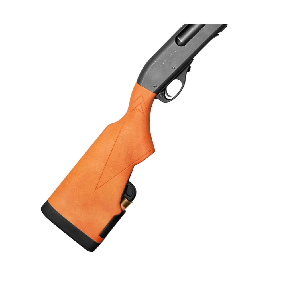 Kaliber 12GA (12/70, 12/76, 12/89), Flinte Mossberg Modell 500, 535, 590, 600, 835 und/oder Maverick 88, Hinterschaft Flash-5 mit Patronenfach für 5/fünf Patronen Synthetic orange, mit Recoil Pad/Schaftkappe schwarz und Riemenbügelöse montiert, für Rechts- oder Linkshänder geeignet, Lieferung ohne Schaftbefestigungsschraube, Code TLFL5-M50LL TactaLoad USA. Eine fachgerechte Montage wird empfohlen - Preis gültig für 1/einen Schaft Code TLFL5-M50LL - Blitzschneller Zugriff auf 5/fünf geschützte Reservepatronen!
