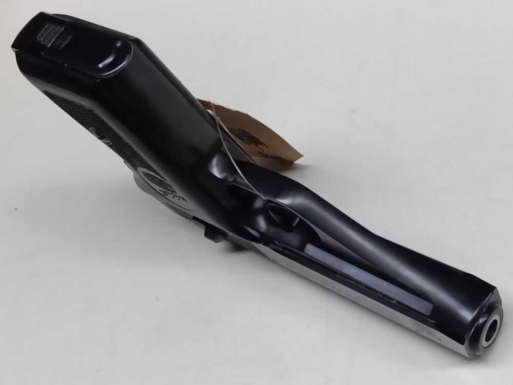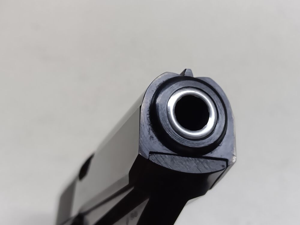 Ganzstahlpistole mit einem 8,5 cm langen spiegelblanken Lauf , Gesamtlänge 16,5 cm , Visierlänge 12,5 cm , seitenverschiebbare Kimme , festes Dachkorn , Double-Action Abzug , außenliegender Hahn , ori... ...weiterlesen