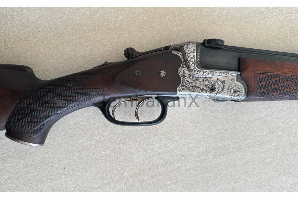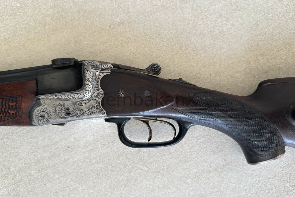 Besonders hervorzuheben sind die sehr schönen, handgemachten Verzierungen, die der Waffe einen eleganten und hochwertigen Charakter verleihen und die klassische Büchsenmacherqualität unterstreichen.