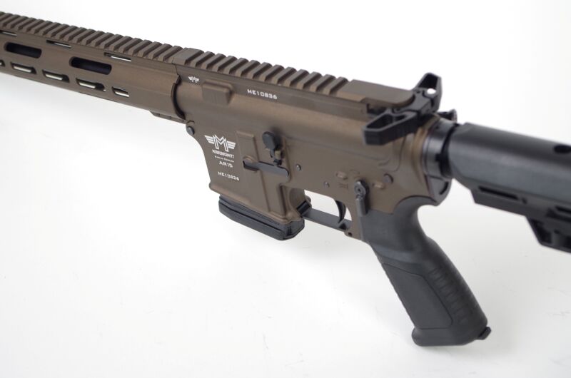 Messerschmitt AR15 16,75" - .223 Rem. BronzeDas Messerschmitt AR15 ist ein modernes, leistungsstarkes Selbstladegewehr, entwickelt für die Ansprüche von Sportschützen und ambitionierten Anwendern. Mit höchster Präzision gefertigt und nach deutschen Standards konstruiert, überzeugt es durch herausragende Zuverlässigkeit, sanftes Handling und konstante Präzision.