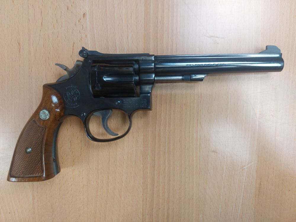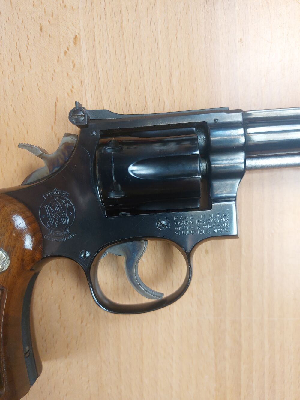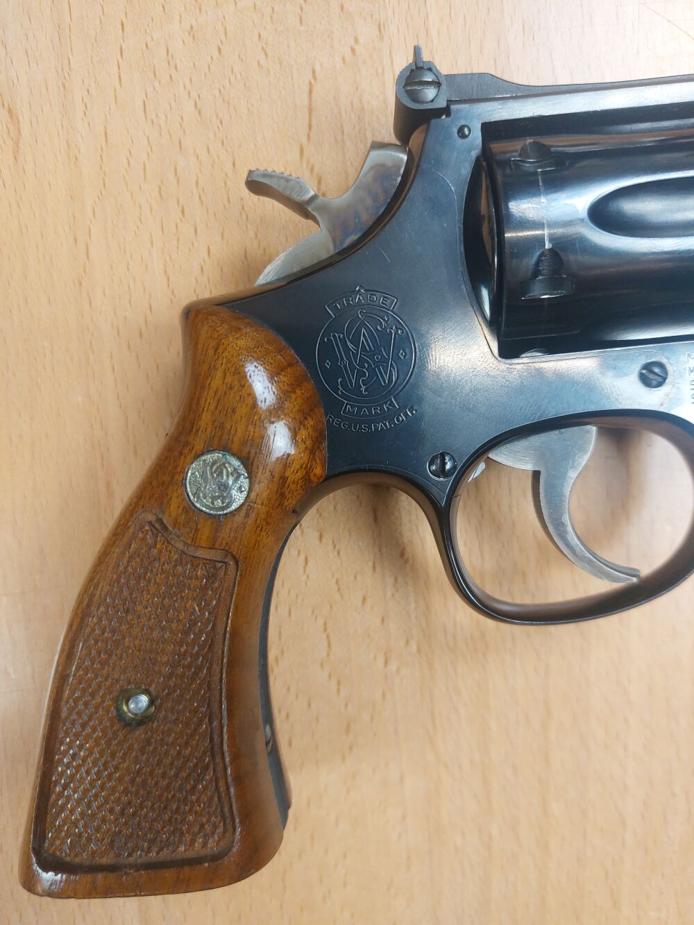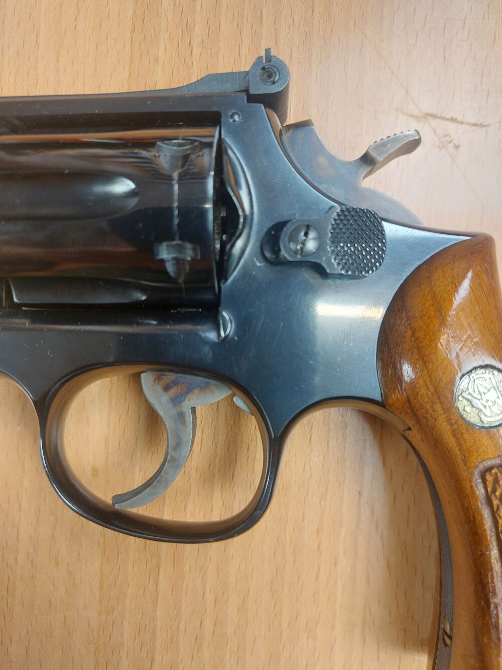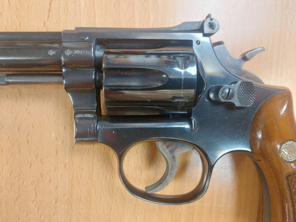 Smith & Wesson Model 17 - 4 Kaliber .22 lr Lauflänge 6 Zoll K-Rahmen 6 Schuss Trommel kleiner Seriengriff Verstellbares Visier Bunthärtung von Hammer und Abzug fast vollständig erhalten... ...weiterlesen