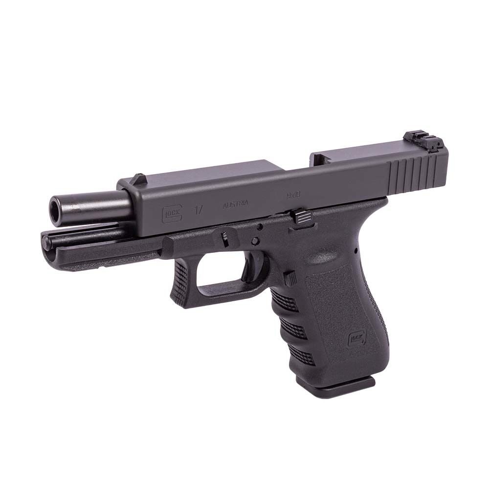 Die Glock 17 Gen3 bietet eine Magazinkapazität von 17 Patronen und zeichnet sich durch ihre intuitive Bedienung aus. Der Abzug mit integriertem Sicherheitsbügel ist typisch für Glock und gewährleistet ein hohes Maß an Sicherheit und Präzision. Das Polymer-Griffstück in Kombination mit dem Tenifer-beschichteten Stahlschlitten sorgt für ein geringes Gewicht bei gleichzeitig hoher Widerstandsfähigkeit gegenüber äußeren Einflüssen.