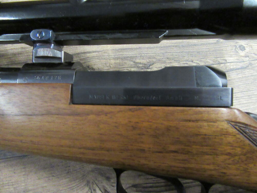 Mauser 66 SL  in sehr gutem Zustand. Kaliber 30-06 , seltene Ausführung mit Einabzug und Stecher auf dem Kolbenhals. Waffenlänge : 106cm     Abzug - Schaftende : 36cm    Lauflänge :  60cm     ...weiterlesen
