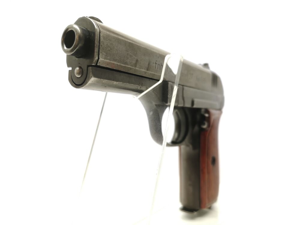 Stempel (Ordonanz): Abnahmestempel auf dem Lauf, Nummer auf Griffstück und Verschlußoberseite, fnh-Pistol Modell 27 Kal. 7,65