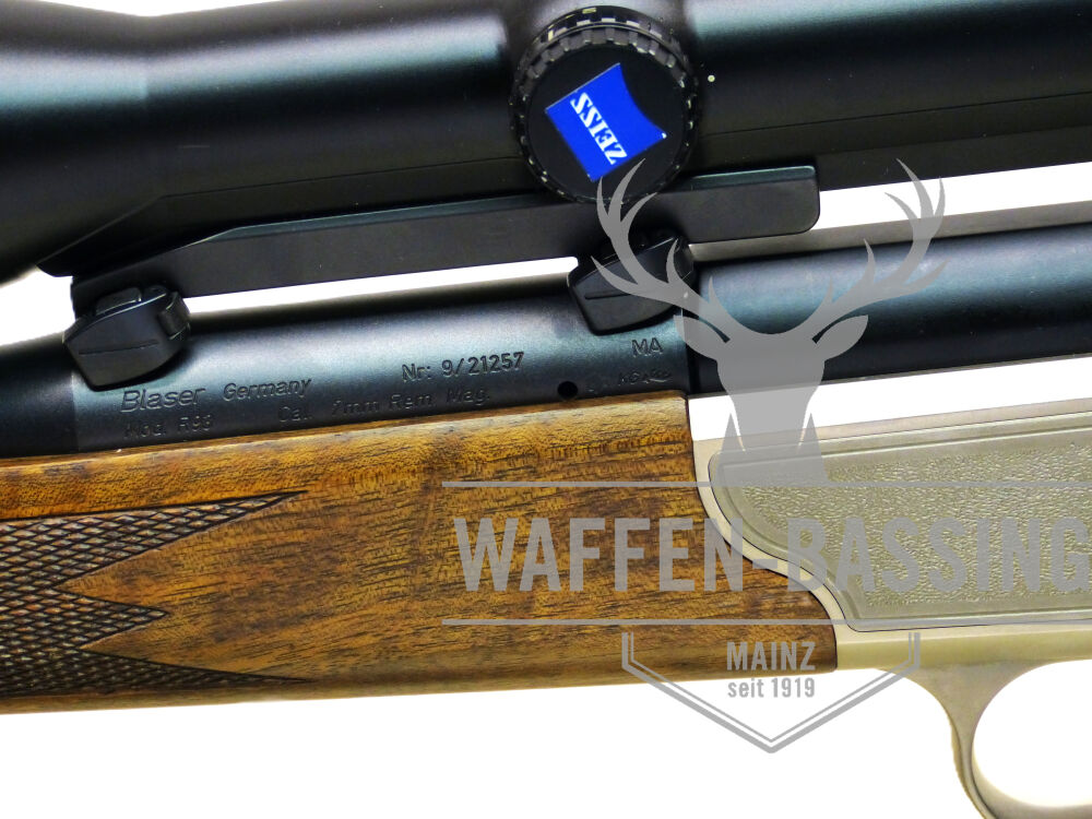 Blaser R93 Repetierbüchse, Kal. .7mm Rem. Magnum, Gebrauchtwaffe mit Zeiss ZFR Die Blaser Repetierbüchse R93 Holzschaft im Kaliber 7mm Remington Magnum ist eine Gebrauchtwaffe mit Zeiss Zielfernroh... ...weiterlesen