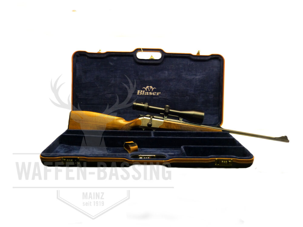 Der Zustand der Waffe ist neuwertig und als besonderes Highlight kommt der Repetierer im Original Blaser Lederkoffer.