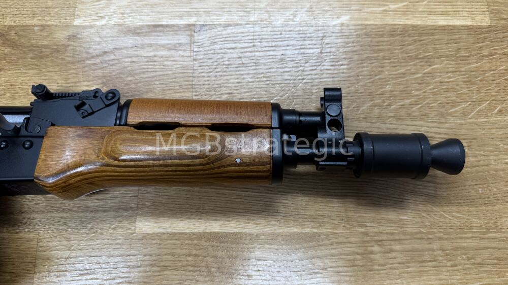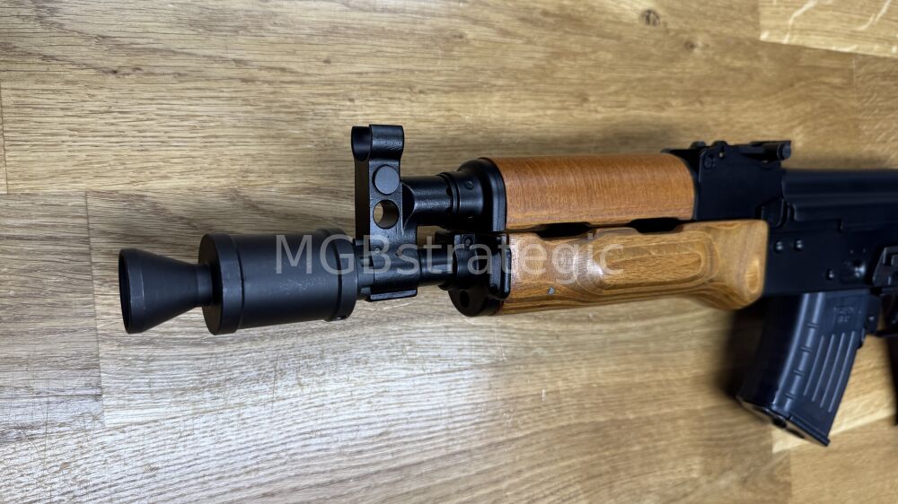 An der Mündung ist auf dem Gewinde 14x1links (Standartgewinde AKM / AK74).