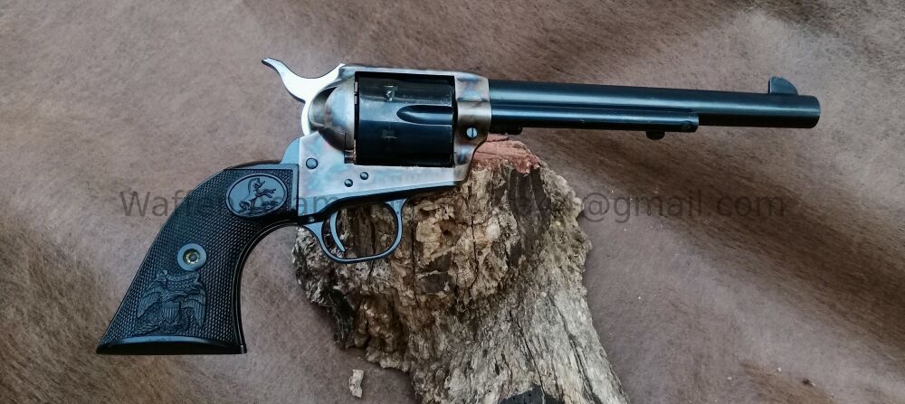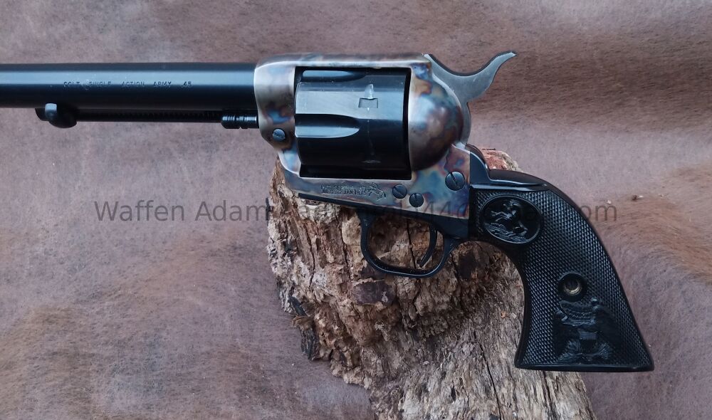 Schöner Colt SAA, Kaliber.45 Colt, original Brünierung und Bunthärtung des Rahmens, Gebraucht Waffe mit altersbedingten Kratzern und Gebrauchsspuren.